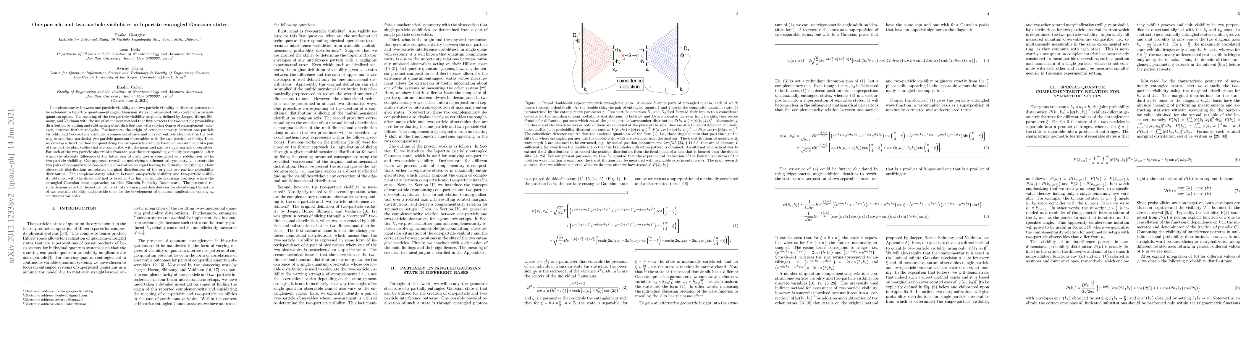 This paper develops a direct method for quantifying two-particle visibility in bipartite entangled Gaussian states, revealing a mathematical symmetry by treating all four observable distributions as rotated marginal distributions. The complementarity between one-particle and two-particle visibility is shown to be exact in the limit of infinite Gaussian precision, providing tools for quantum applications using continuous variables.