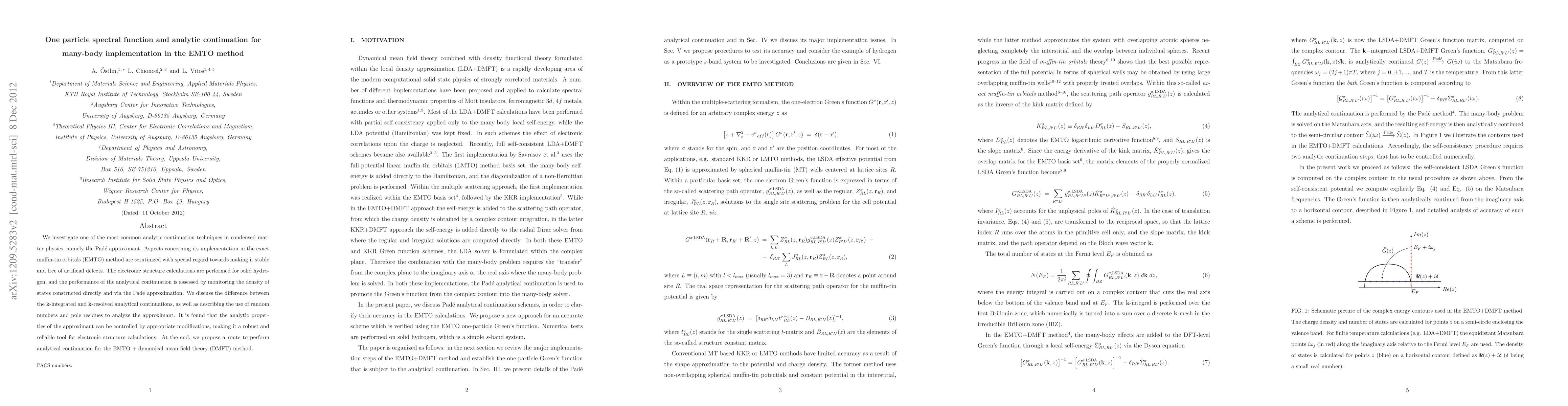 This paper scrutinizes the implementation of the Padé approximant for analytic continuation in the EMTO method, demonstrating stability and reliability through electronic structure calculations on solid hydrogen. The study proposes a robust continuation technique for the EMTO + DMFT method, highlighting the control over the approximant's analytic properties.