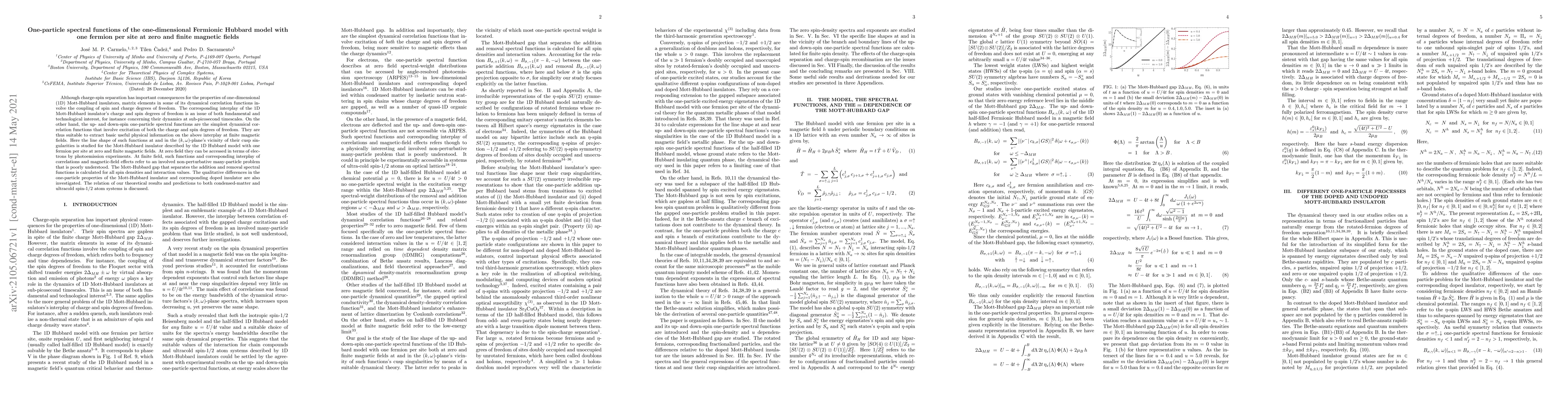 This paper investigates the one-particle spectral functions of the 1D Fermionic Hubbard model, focusing on the Mott-Hubbard insulator with one fermion per site under zero and finite magnetic fields. The study reveals the Mott-Hubbard gap and explores the interplay between correlations and magnetic-field effects, providing theoretical insights relevant to condensed-matter and ultracold atom systems.
