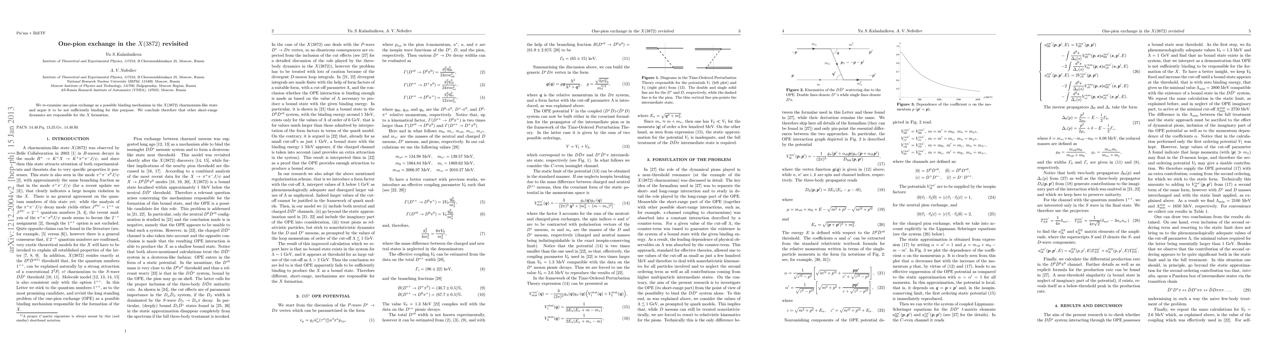 Summary: This paper re-evaluates the role of one-pion exchange in the X(3872) state, concluding it is not a sufficient binding mechanism. The authors suggest alternative short-range dynamics are likely responsible for the formation of the X(3872).