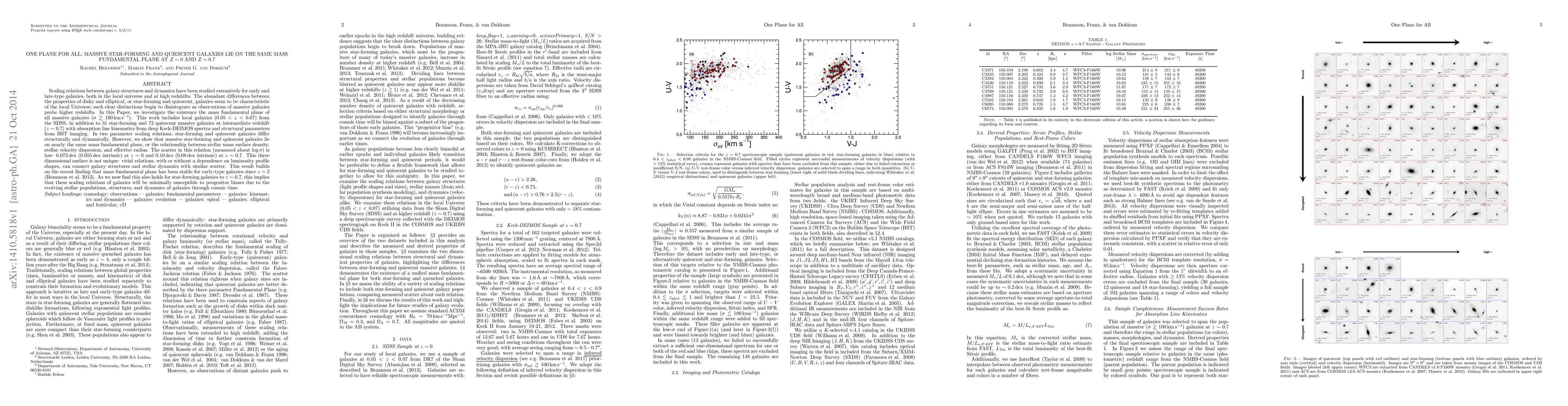 This paper demonstrates that massive star-forming and quiescent galaxies at both low and intermediate redshifts (z~0 and z~0.7) lie on the same mass fundamental plane, indicating a consistent relationship between stellar mass surface density, stellar velocity dispersion, and effective radius across different galaxy types. The low scatter in this relation suggests that these scaling relations are stable over cosmic time.
