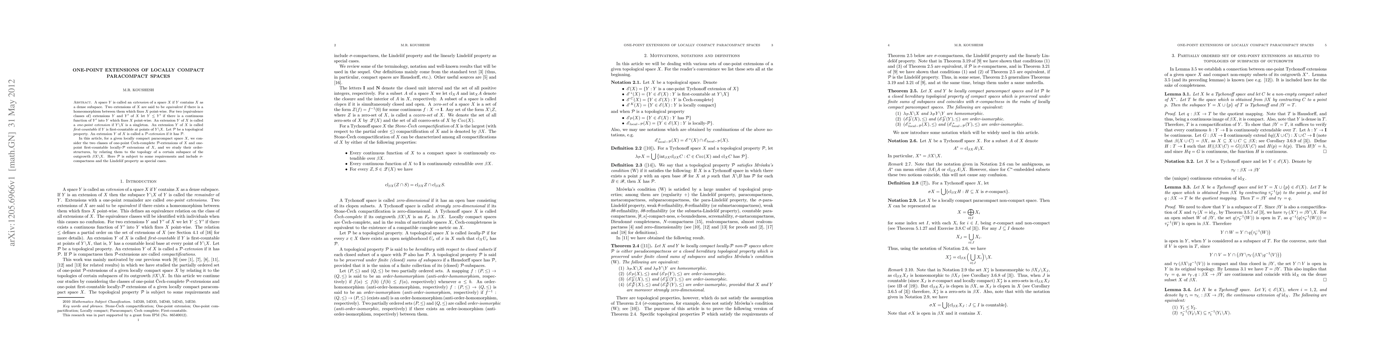 This paper investigates the order structures of two classes of one-point extensions of locally compact paracompact spaces: one-point Čech-complete ${\mathcal P}$-extensions and one-point first-countable locally-${\mathcal P}$ extensions. It relates these classes to the topology of a specific subspace within the outgrowth $\beta X\backslash X$.