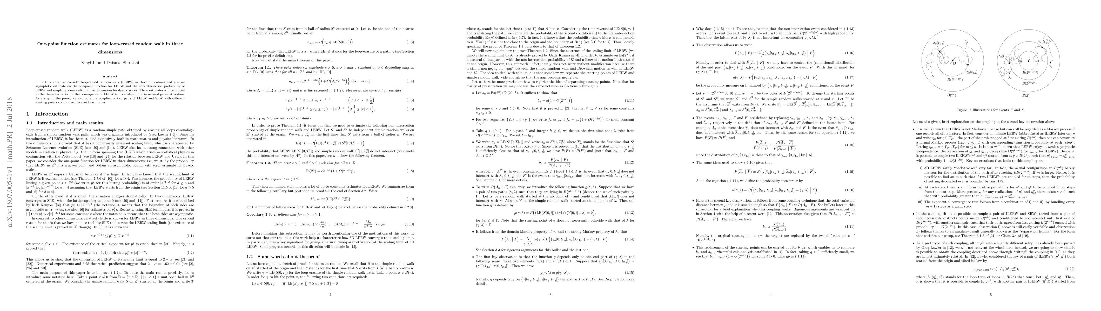 This paper provides asymptotic estimates for the one-point function of loop-erased random walk (LERW) in three dimensions and the non-intersection probability between LERW and simple random walk (SRW). These results are essential for characterizing the convergence of LERW to its scaling limit.