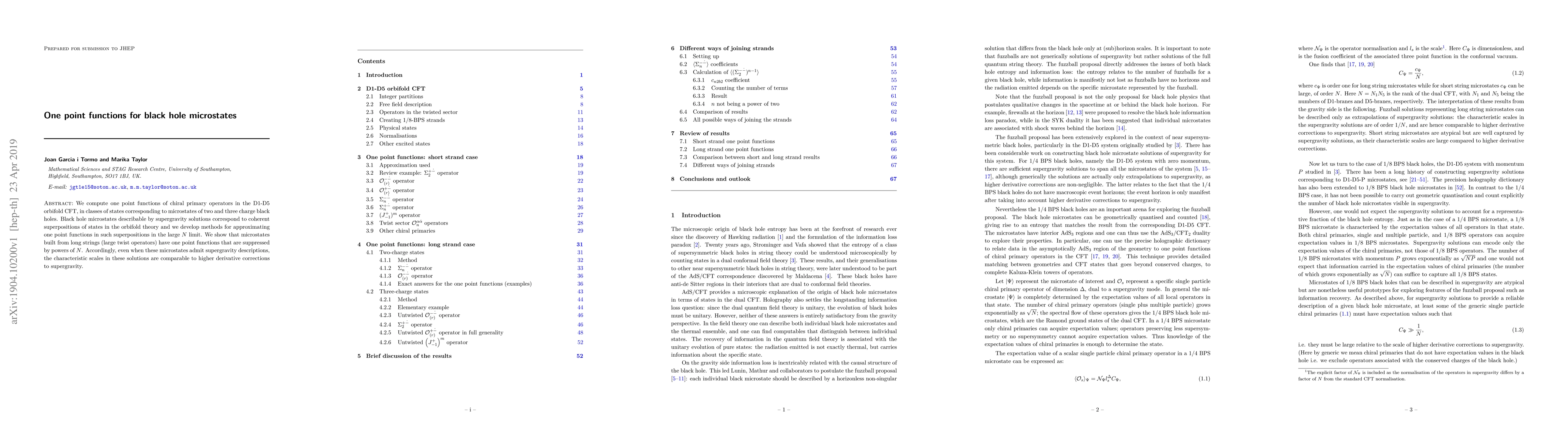 Researchers computed one-point functions for black hole microstates in a specific CFT model, finding that states with long strings have suppressed one-point functions with powers of N, implying comparable scales to higher derivative corrections.