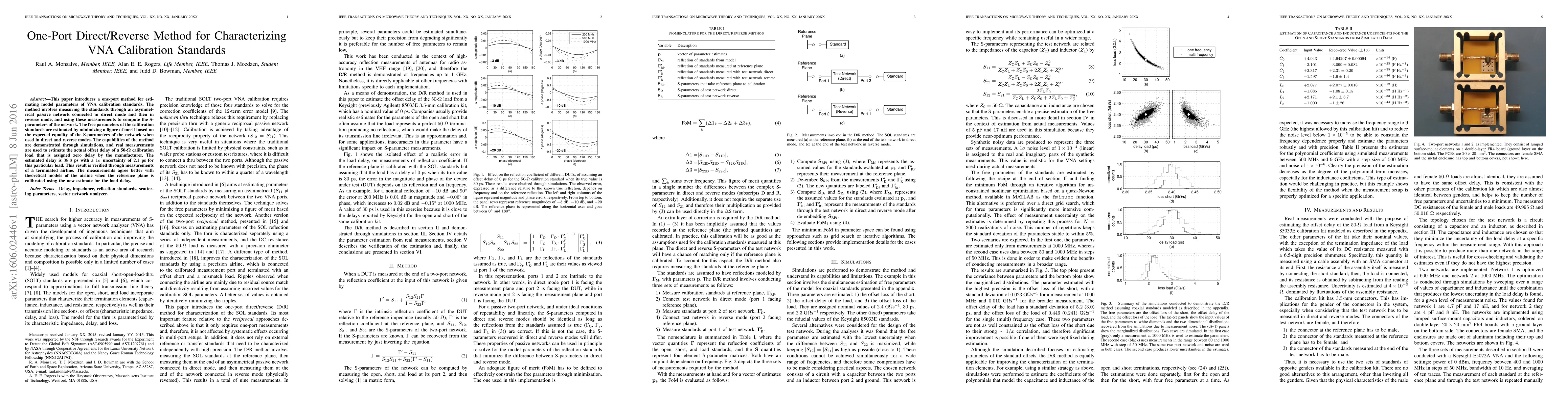 A new one-port method is introduced for characterizing VNA calibration standards, allowing for accurate estimation of model parameters with a high degree of accuracy and reduced uncertainty.