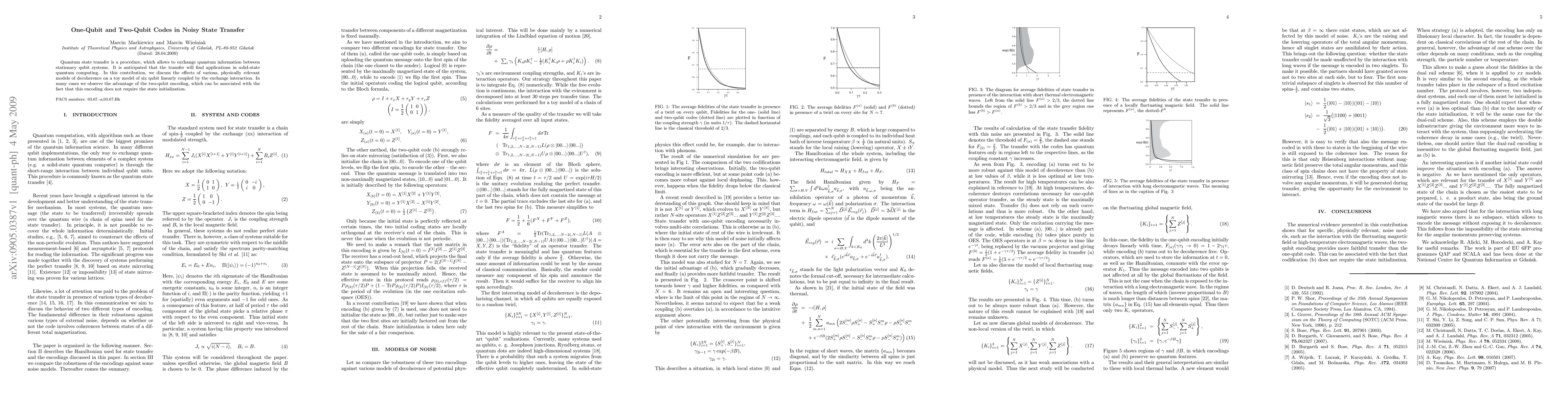 Quantum state transfer is a procedure, which allows to exchange quantum information between stationary qubit systems. It is anticipated that the transfer will find applications in solid-state quantum computing. In this contribution, we discuss the effects of various, physically relevant models of decoherence on a toy model of six qubit linearly coupled by the exchange interaction. In many cases we observe the advantage of the two-qubit encoding, which can be associated with the fact that this encoding does not require the state initialization.