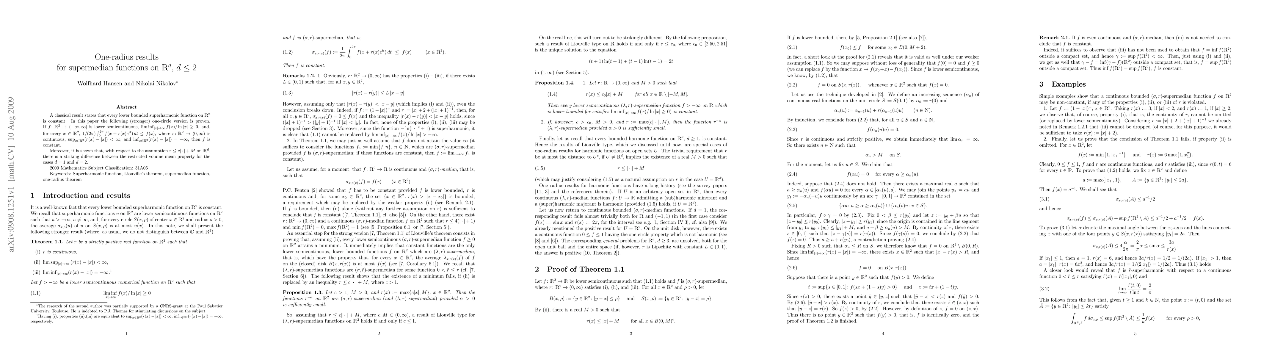 A paper proves that a type of function on 2D space is constant if it meets certain conditions, including being lower semicontinuous and having a specific relationship with its radius.