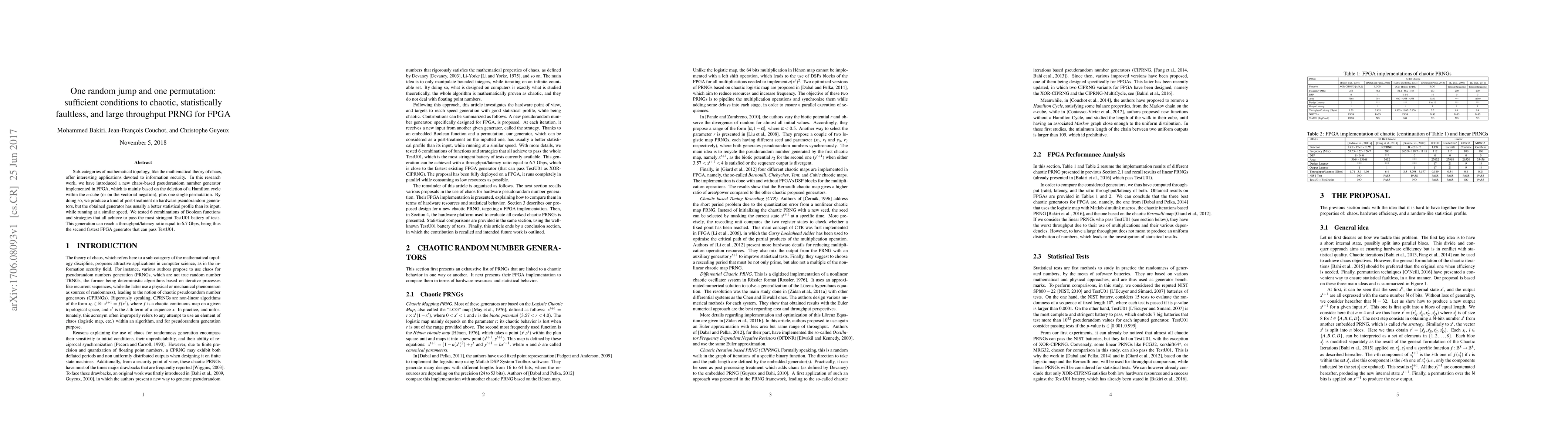 This paper introduces a new chaos-based pseudorandom number generator implemented in FPGA, utilizing a Hamilton cycle deletion and a single permutation to enhance statistical quality while maintaining speed. It achieves a throughput/latency ratio of 6.7 Gbps and passes the stringent TestU01 battery of tests.