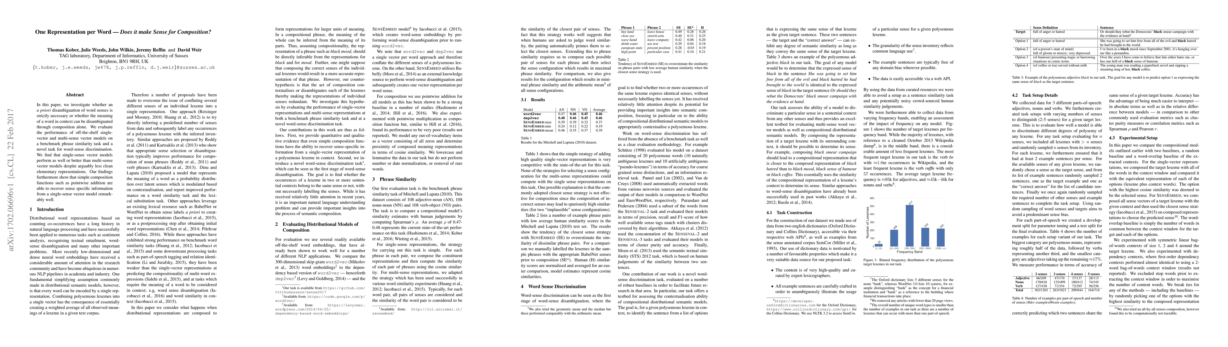 In this paper, we investigate whether an a priori disambiguation of word senses is strictly necessary or whether the meaning of a word in context can be disambiguated through composition alone. We evaluate the performance of off-the-shelf single-vector and multi-sense vector models on a benchmark phrase similarity task and a novel task for word-sense discrimination. We find that single-sense vector models perform as well or better than multi-sense vector models despite arguably less clean elementary representations. Our findings furthermore show that simple composition functions such as pointwise addition are able to recover sense specific information from a single-sense vector model remarkably well.