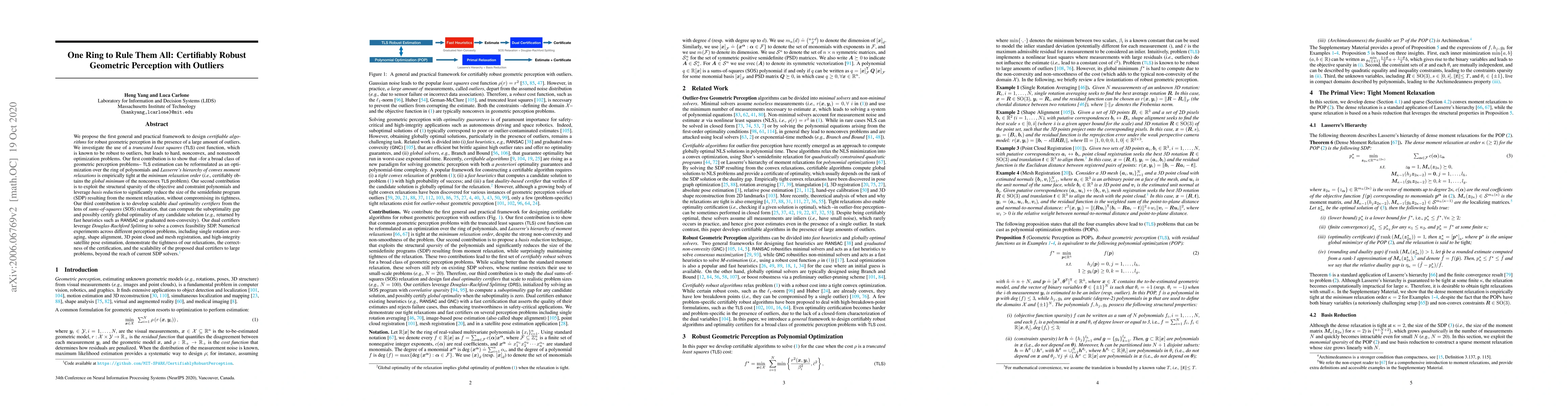 This paper presents a framework for robust geometric perception algorithms that can handle outliers, reformulating truncated least squares estimation as an optimization problem over polynomial rings. It leverages Lasserre's hierarchy and basis reduction to efficiently solve the resulting semidefinite program, and develops scalable dual certifiers to verify the optimality of solutions obtained from heuristics.