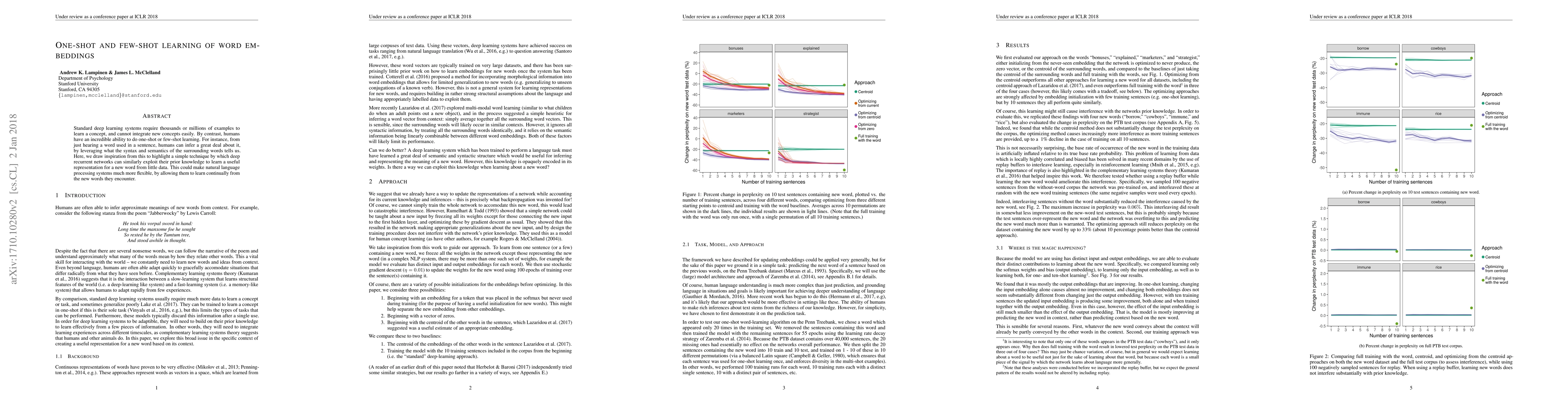 This paper proposes a technique for deep recurrent networks to learn word embeddings from one or few examples, mimicking the human ability for one-shot or few-shot learning. This approach aims to make natural language processing systems more flexible by enabling them to continually adapt to new words.