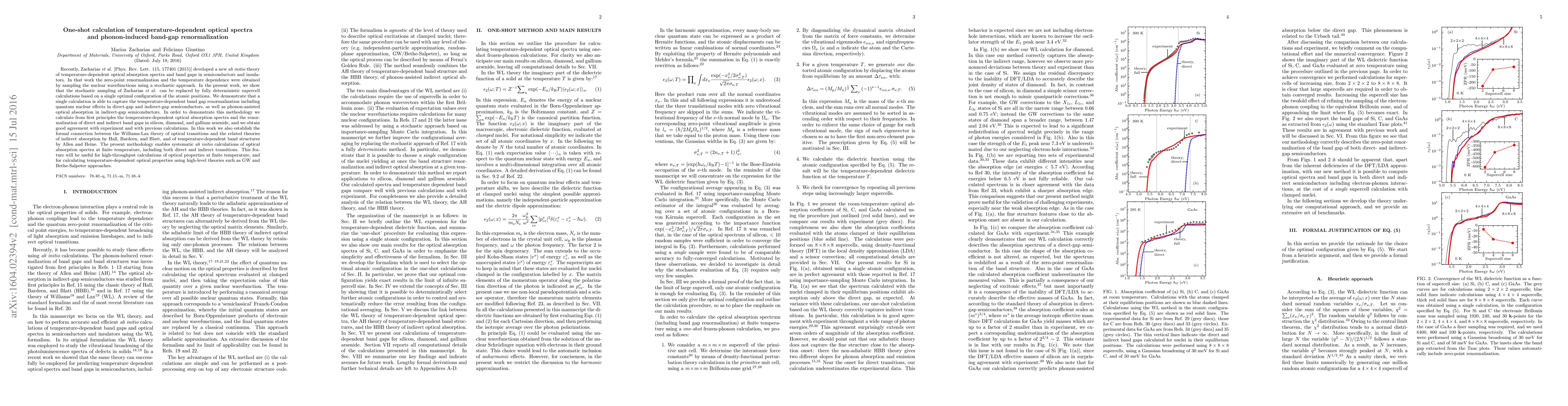 Recently, Zacharias et al [Phys. Rev. Lett. 115, 177401 (2015)] developed a new ab initio theory of temperature-dependent optical absorption spectra and band gaps in semiconductors and insulators. In that work the zero-point renormalization and the temperature dependence were obtained by sampling the nuclear wavefunctions using a stochastic approach. In the present work, we show that the stochastic sampling can be replaced by fully deterministic supercell calculations based on a single optimal configuration of the atomic positions. We demonstrate that a single calculation is able to capture the temperature-dependent band gap renormalization including quantum nuclear effects in direct and indirect-gap semiconductors, as well as phonon-assisted optical absorption in indirect-gap semiconductors. In order to demonstrate this methodology we calculate from first principles the temperature-dependent optical absorption spectra and the renormalization of direct and indirect band gaps in Si, C, and GaAs, and we obtain good agreement with experiment and with previous calculations. In this work we also establish the formal connection between the Williams-Lax theory of optical transitions and the related theories of indirect absorption by Hall, Bardeen, and Blatt, and of temperature-dependent band structures by Allen and Heine. Furthermore, we identify an additional band gap renormalization that arises in the case of degenerate band extrema, and which has not been considered in previous work. The present methodology enables systematic ab initio calculations of optical absorption spectra at finite temperature, including both direct and indirect transitions. This feature will be useful for high-throughput calculations of optical properties at finite temperature, and for calculating temperature-dependent optical properties using high-level theories such as GW and Bethe-Salpeter approaches.