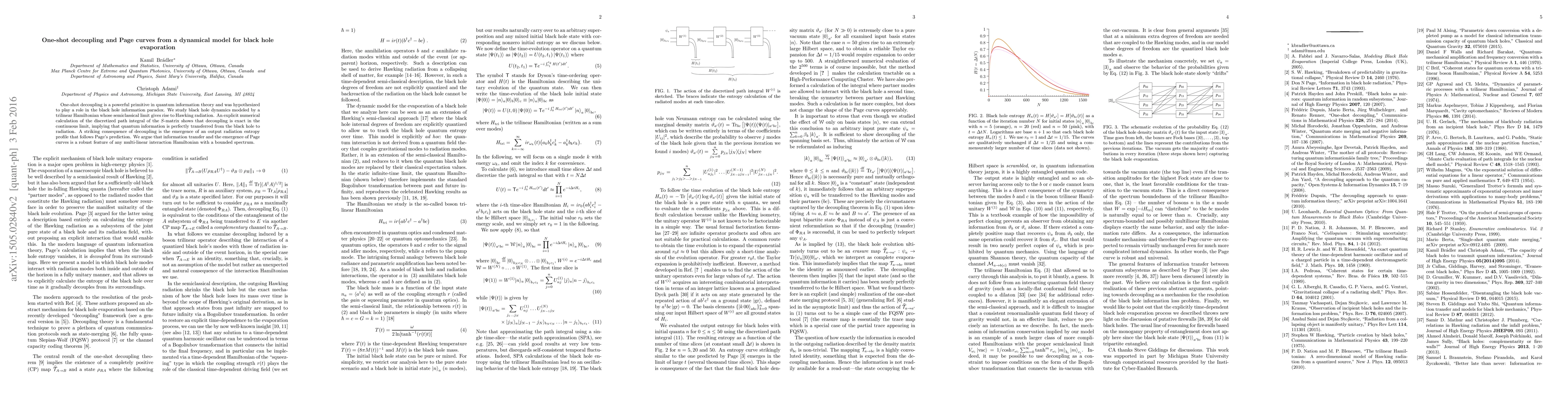 One-shot decoupling is a powerful primitive in quantum information theory and was hypothesized to play a role in the black hole information paradox. We study black hole dynamics modeled by a trilinear Hamiltonian whose semiclassical limit gives rise to Hawking radiation. An explicit numerical calculation of the discretized path integral of the S-matrix shows that decoupling is exact in the continuous limit, implying that quantum information is perfectly transferred from the black hole to radiation. A striking consequence of decoupling is the emergence of an output radiation entropy profile that follows Page's prediction. We argue that information transfer and the emergence of Page curves is a robust feature of any multi-linear interaction Hamiltonian with a bounded spectrum.