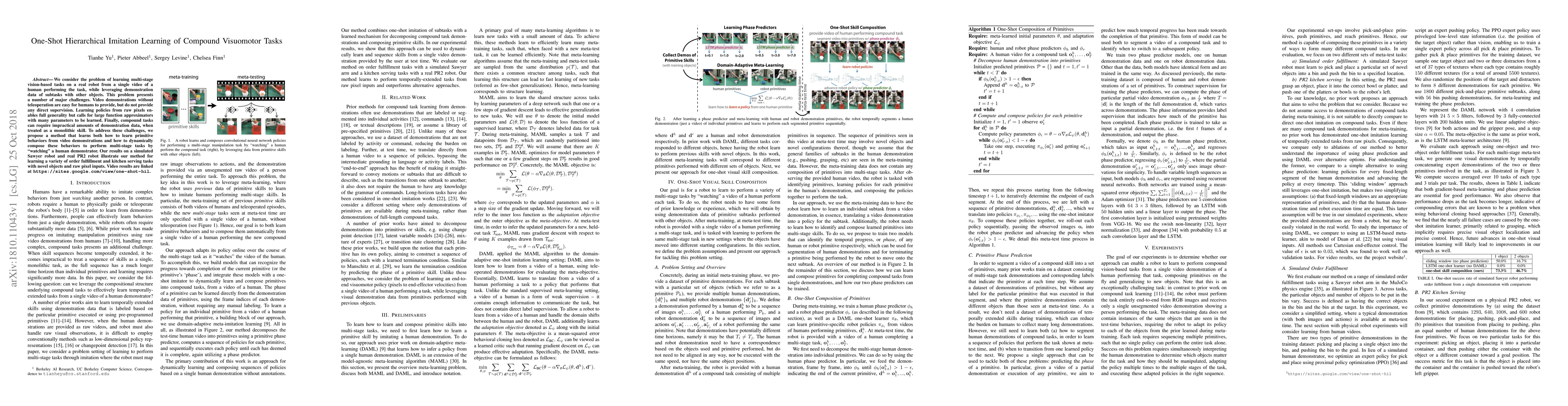 Researchers developed a method to learn complex tasks from a single video of a human demonstrating the task, leveraging subtask demonstrations with different objects. The approach enables learning compound skills with limited demonstration data and raw pixel inputs, demonstrated on real robots.