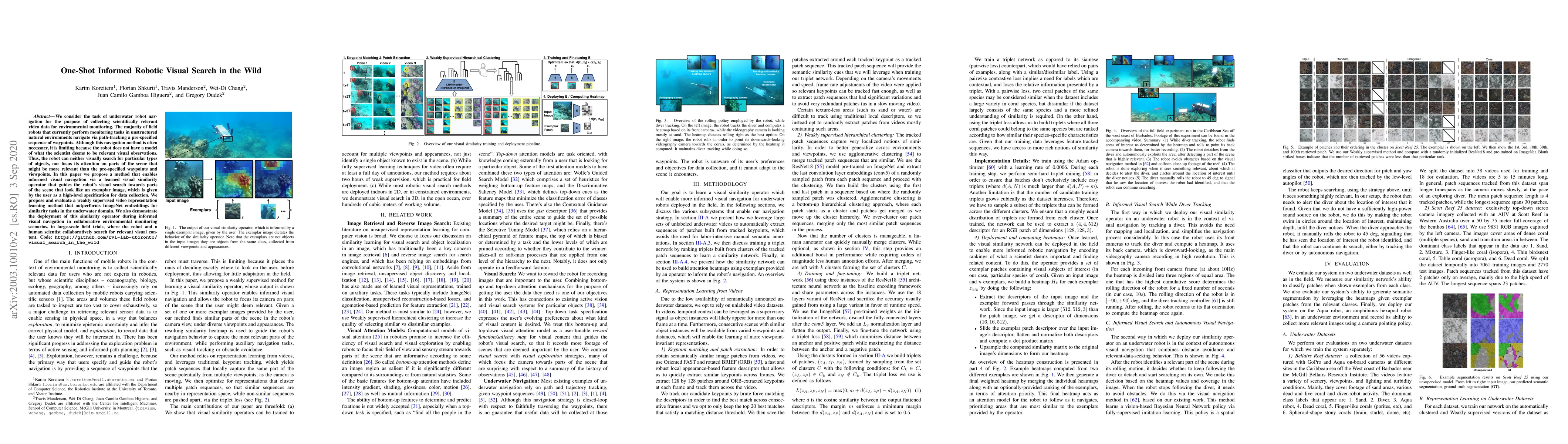 This paper proposes a method for underwater robot navigation that enables informed visual search based on a user-provided exemplar image, using a weakly supervised video representation learning technique. The method outperforms traditional ImageNet embeddings for underwater visual similarity tasks and is demonstrated in large-scale field trials for collaborative environmental monitoring.