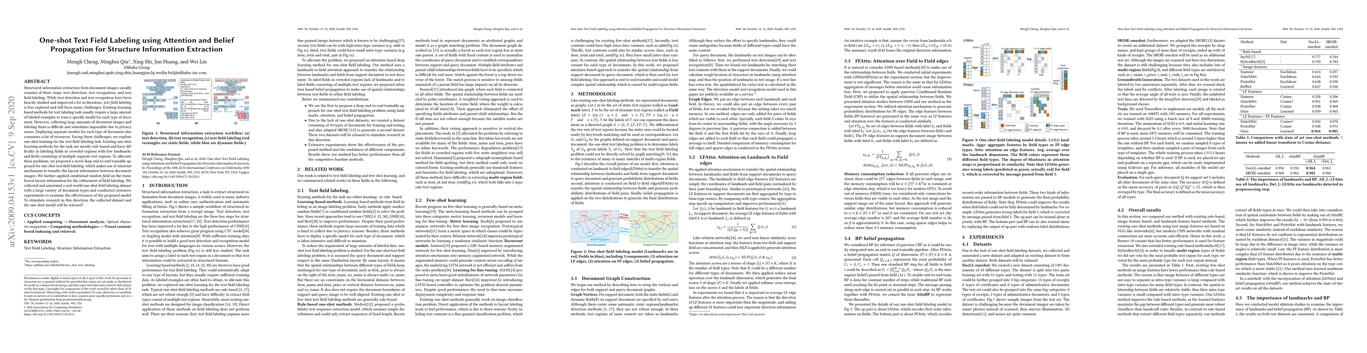 Researchers propose a novel deep learning approach for one-shot text field labeling in document images, leveraging attention mechanisms to transfer layout information and conditional random fields for refinement.