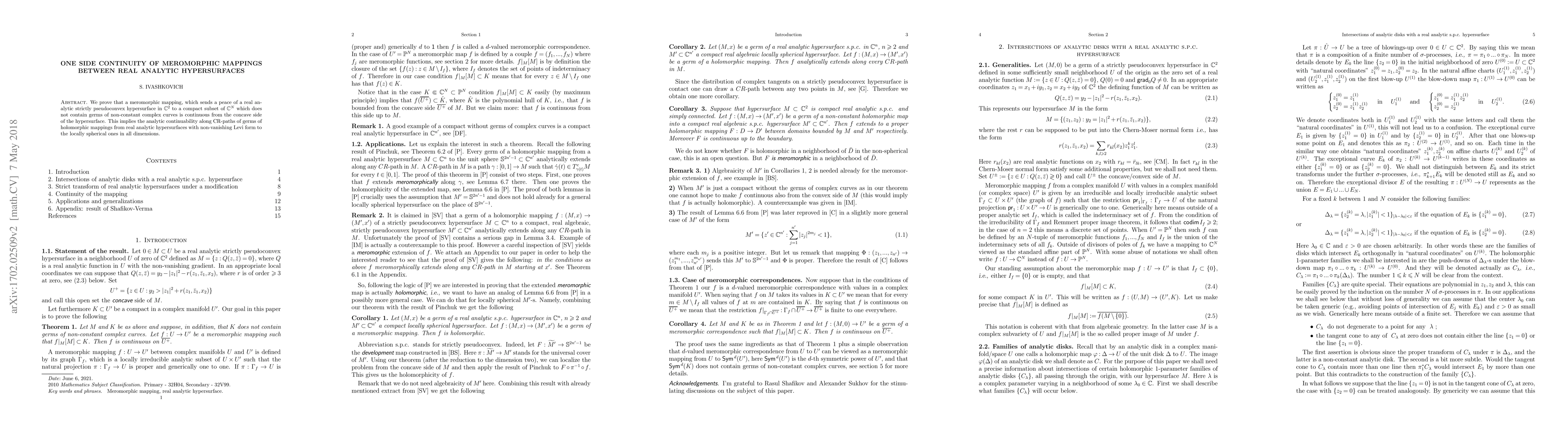 Summary: The paper proves that meromorphic mappings from a strictly pseudoconvex real analytic hypersurface in $\mathbb{C}^2$ to compact subsets of $\mathbb{C}^N$ are continuous from the concave side, implying analytic continuability along CR-paths for holomorphic mappings between hypersurfaces with non-vanishing Levi form and locally spherical ones.