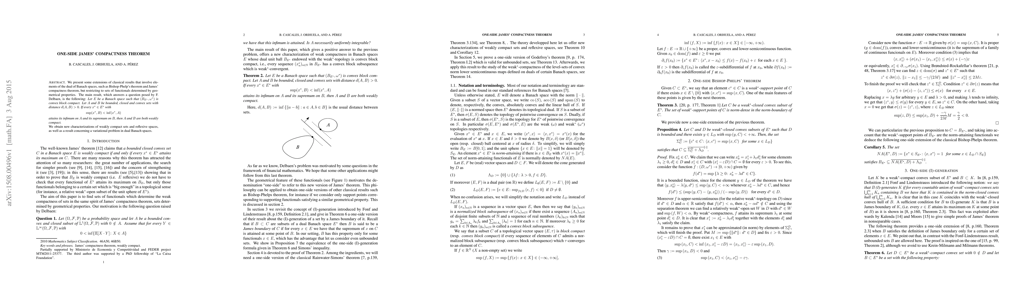 We present some extensions of classical results that involve elements of the dual of Banach spaces, such as Bishop-Phelp's theorem and James' compactness theorem, but restricting to sets of functionals determined by geometrical properties. The main result, which answers a question posed by F. Delbaen, is the following: Let $E$ be a Banach space such that $(B_{E^\ast}, \omega^\ast)$ is convex block compact. Let $A$ and $B$ be bounded, closed and convex sets with distance $d(A,B) > 0$. If every $x^\ast \in E^\ast$ with \[ \sup(x^\ast,B) < \inf(x^\ast,A) \] attains its infimum on $A$ and its supremum on $B$, then $A$ and $B$ are both weakly compact. We obtain new characterizations of weakly compact sets and reflexive spaces, as well as a result concerning a variational problem in dual Banach spaces.