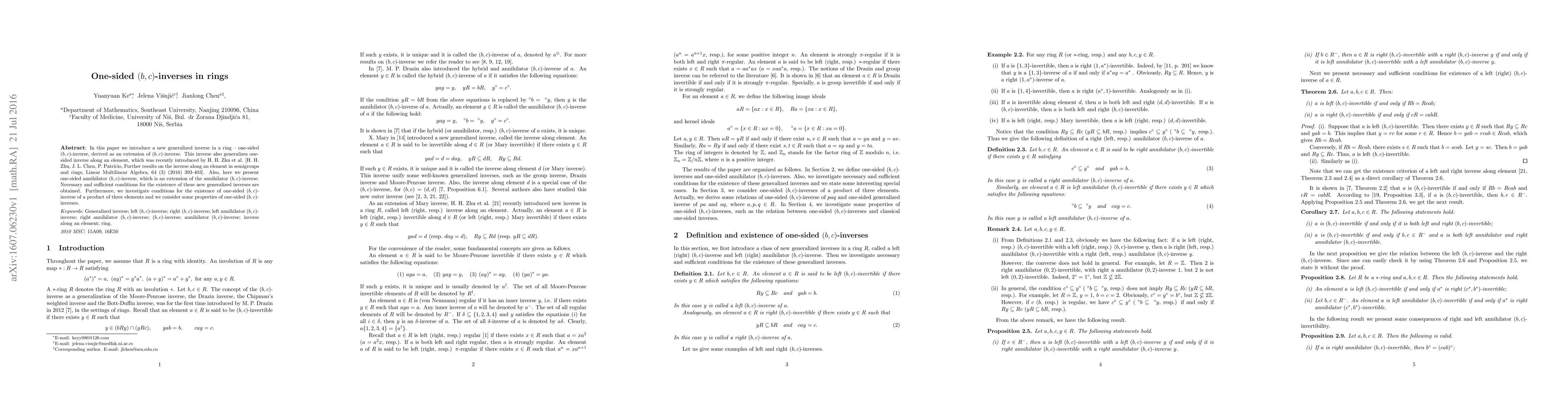 The research introduced a new characterization of the (b,c)-inverse in terms of the ring's involution, providing a more comprehensive understanding of this concept.