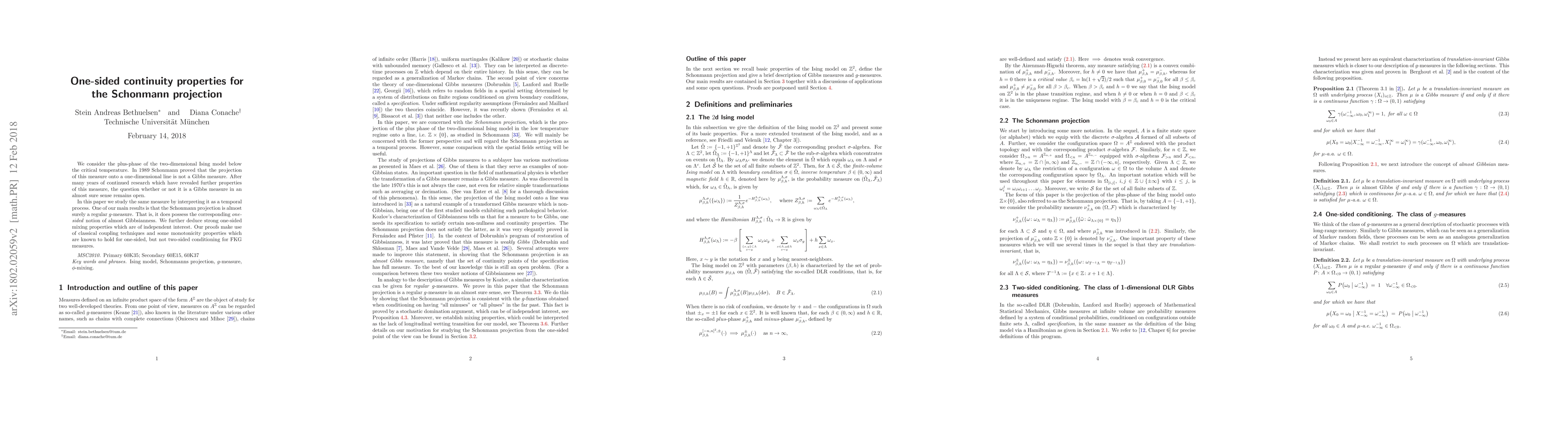 We consider the plus-phase of the two-dimensional Ising model below the critical temperature. In $1989$ Schonmann proved that the projection of this measure onto a one-dimensional line is not a Gibbs measure. After many years of continued research which have revealed further properties of this measure, the question whether or not it is a Gibbs measure in an almost sure sense remains open. In this paper we study the same measure by interpreting it as a temporal process. One of our main results is that the Schonmann projection is almost surely a regular $g$-measure. That is, it does possess the corresponding one-sided notion of almost Gibbsianness. We further deduce strong one-sided mixing properties which are of independent interest. Our proofs make use of classical coupling techniques and some monotonicity properties which are known to hold for one-sided, but not two-sided conditioning for FKG measures.