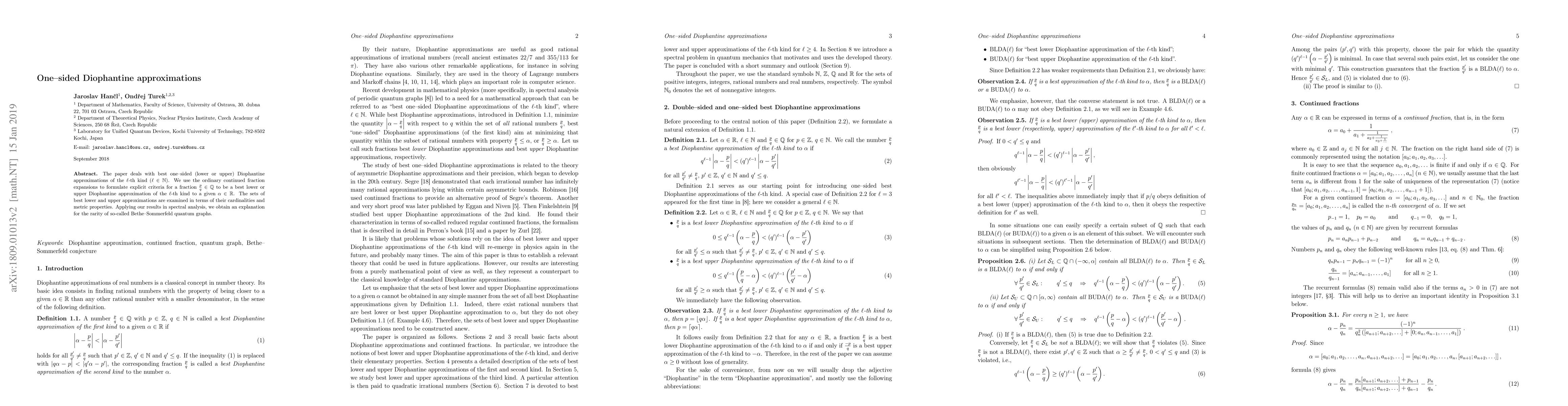 This paper investigates best one-sided Diophantine approximations of the $\ell$-th kind using continued fraction expansions, establishing criteria for fractions to be optimal lower or upper approximations. It explores the cardinalities and metric properties of these sets and applies the findings to explain the rarity of Bethe-Sommerfeld quantum graphs in spectral analysis.