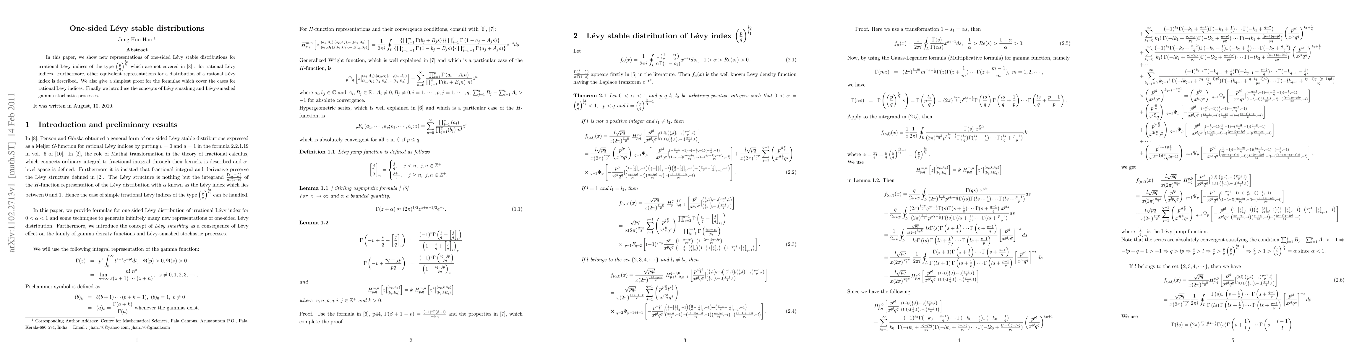 This paper presents new representations of one-sided Lévy stable distributions for irrational Lévy indices, extending beyond previous work on rational indices. It also provides a simplified proof for rational cases and introduces novel Lévy-smashing and Lévy-smashed gamma stochastic processes.