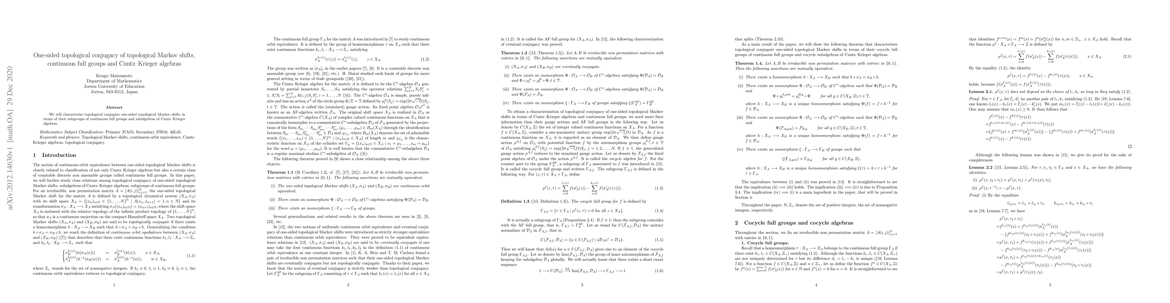 Summary: This paper characterizes one-sided topological Markov shifts that are topologically conjugate based on their subgroups within continuous full groups and subalgebras of Cuntz-Krieger algebras. The study establishes a connection between these algebraic structures and topological conjugacy.