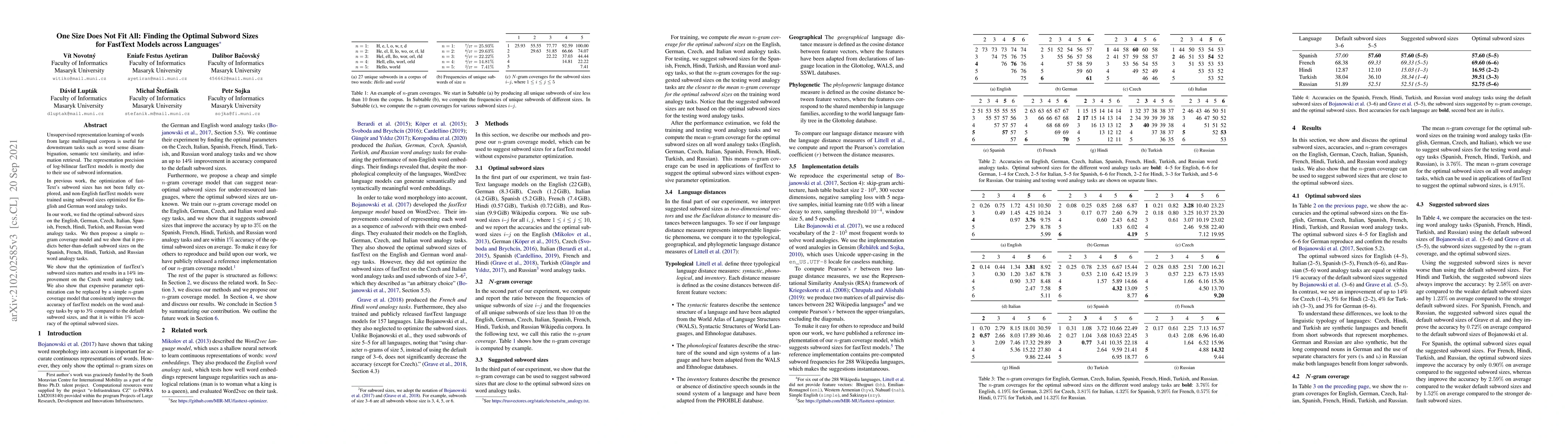 Researchers found optimal subword sizes for FastText models on 10 languages, improving performance by up to 14% and suggesting a simple n-gram coverage model as an alternative to expensive parameter optimization.