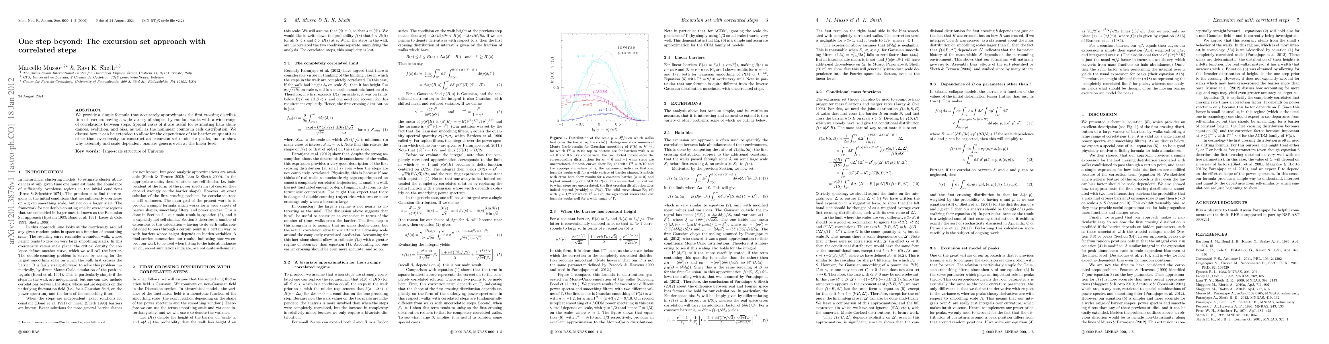 We provide a simple formula that accurately approximates the first crossing distribution of barriers having a wide variety of shapes, by random walks with a wide range of correlations between steps. Special cases of it are useful for estimating halo abundances, evolution, and bias, as well as the nonlinear counts in cells distribution. We discuss how it can be extended to allow for the dependence of the barrier on quantities other than overdensity, to construct an excursion set model for peaks, and to show why assembly and scale dependent bias are generic even at the linear level.