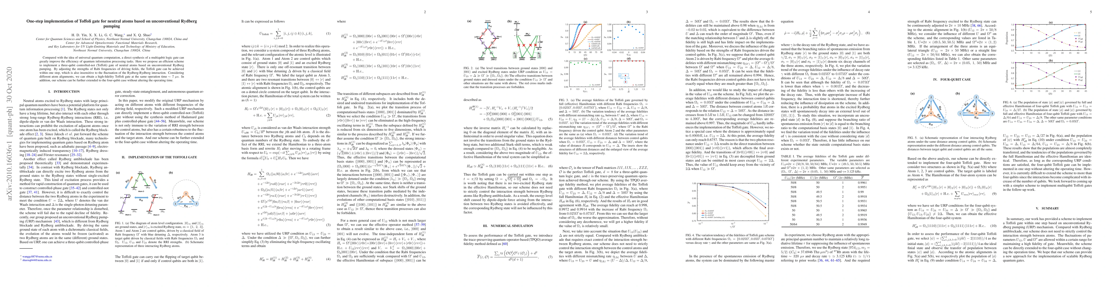 This paper proposes an efficient one-step method to implement a three-qubit Toffoli gate using neutral atoms and unconventional Rydberg pumping, achieving high fidelity within 7 µs and extending to four qubits without time alteration. The scheme is robust against Rydberg-Rydberg interaction fluctuations.
