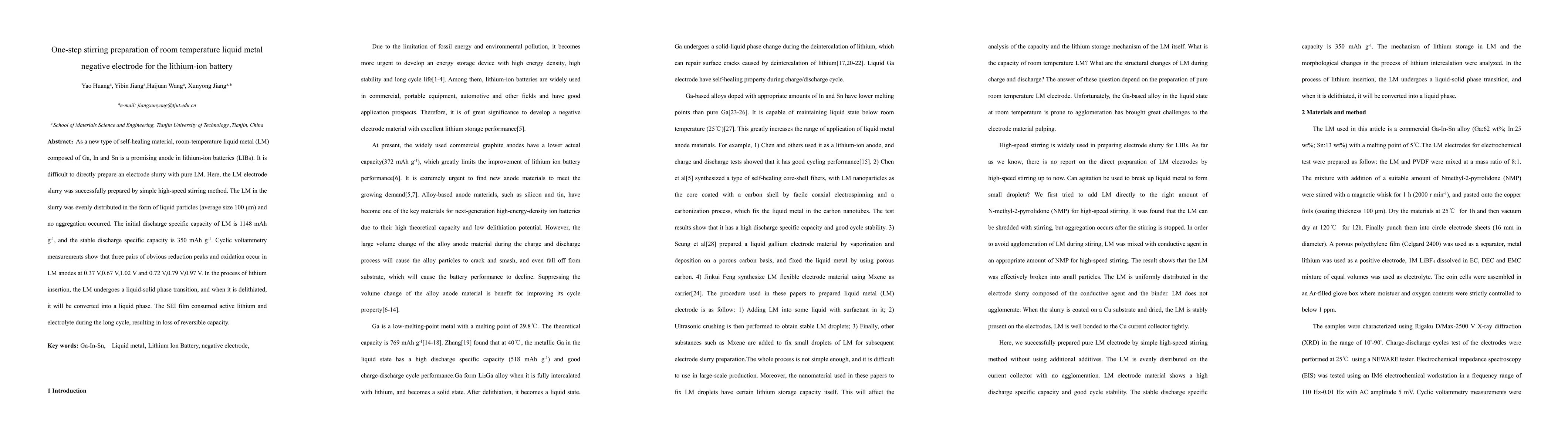Researchers developed a new method to prepare room temperature liquid metal electrodes for lithium-ion batteries, achieving stable performance and high capacity.