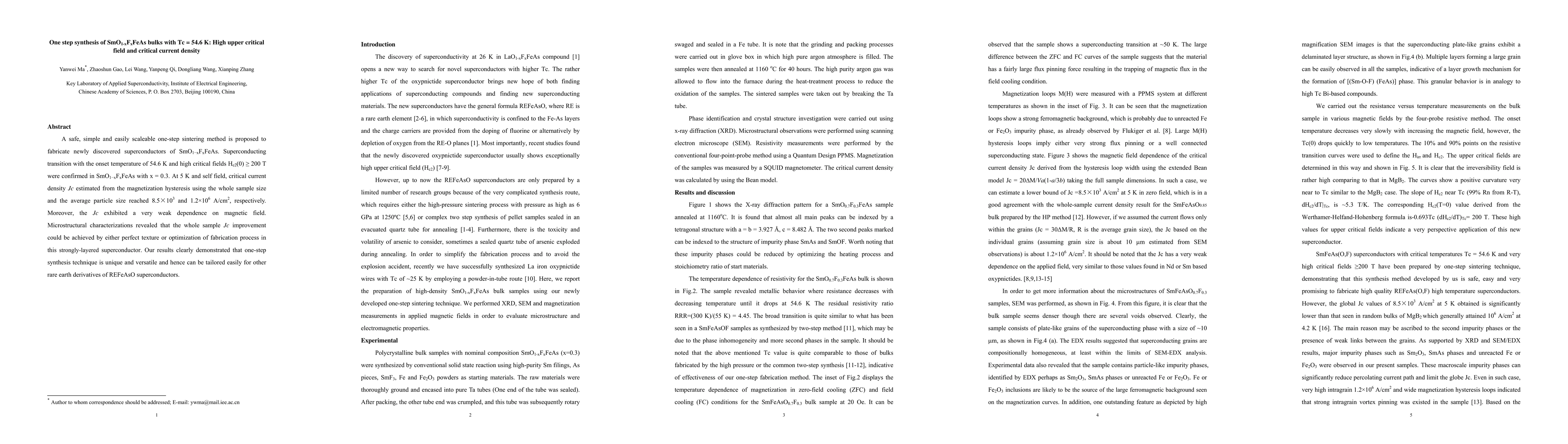 A safe, simple and easily scaleable one-step sintering method is proposed to fabricate newly discovered superconductors of SmO1-xFxFeAs. Superconducting transition with the onset temperature of 54.6 K and high critical fields Hc2(0) >=200 T were confirmed in SmO1-xFxFeAs with x = 0.3. At 5 K and self field, critical current density Jc estimated from the magnetization hysteresis using the whole sample size and the average particle size reached 8.5x10^3 and 1.2x10^6 A/cm^2, respectively. Moreover, the Jc exhibited a very weak dependence on magnetic field. Microstructural characterizations revealed that the whole sample Jc improvement could be achieved by either perfect texture or optimization of fabrication process in this strongly-layered superconductor. Our results clearly demonstrated that one-step synthesis technique is unique and versatile and hence can be tailored easily for other rare earth derivatives of REFeAsO superconductors.