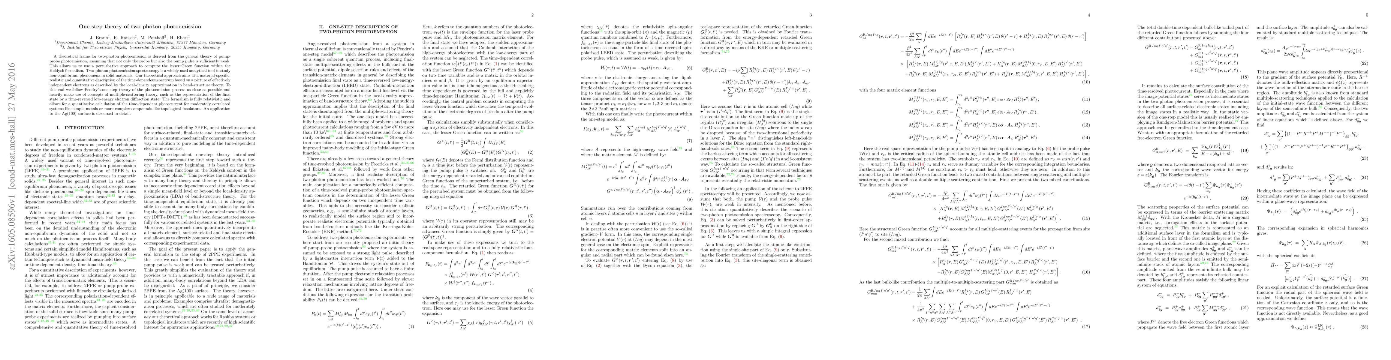 This paper presents a theoretical framework for two-photon photoemission based on a one-step theory, employing a perturbative approach within the Keldysh formalism for weak pump and probe pulses. The model aims to provide a realistic and quantitative description of the time-dependent spectrum for non-equilibrium phenomena in solid materials, applicable to simple metals and topological insulators.