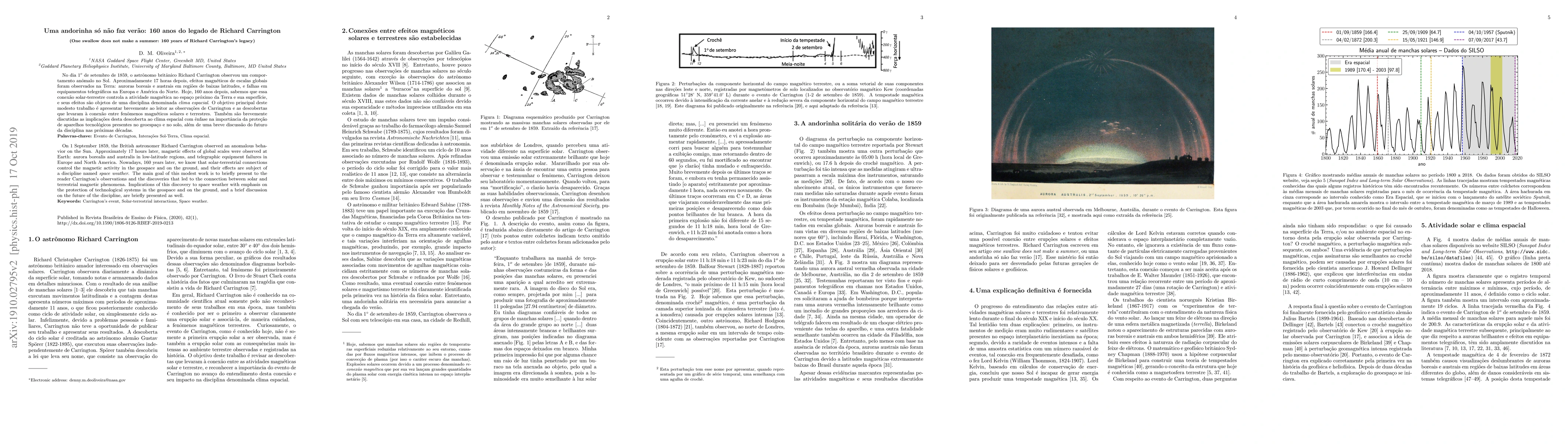 On 1 September 1859, the British astronomer Richard Carrington observed an anomalous behavior on the Sun. Approximately 17 hours later, magnetic effects of global scales were observed at Earth: aurora borealis and australis in low-latitude regions, and telegraphic equipment failures in Europe and North America. Nowadays, 160 years later, we know that solar-terrestrial connections control the magnetic activity in the geospace and on the ground, and their effects are subject of a discipline named {\it space weather}. The main goal of this modest work is to briefly present to the reader Carrington's observations and the discoveries that led to the connection between solar and terrestrial magnetic phenomena. Implications of this discovery to space weather with emphasis on the protection of technological systems in the geospace and on the ground, and a brief discussion on the future of the discipline, are briefly presented as well.