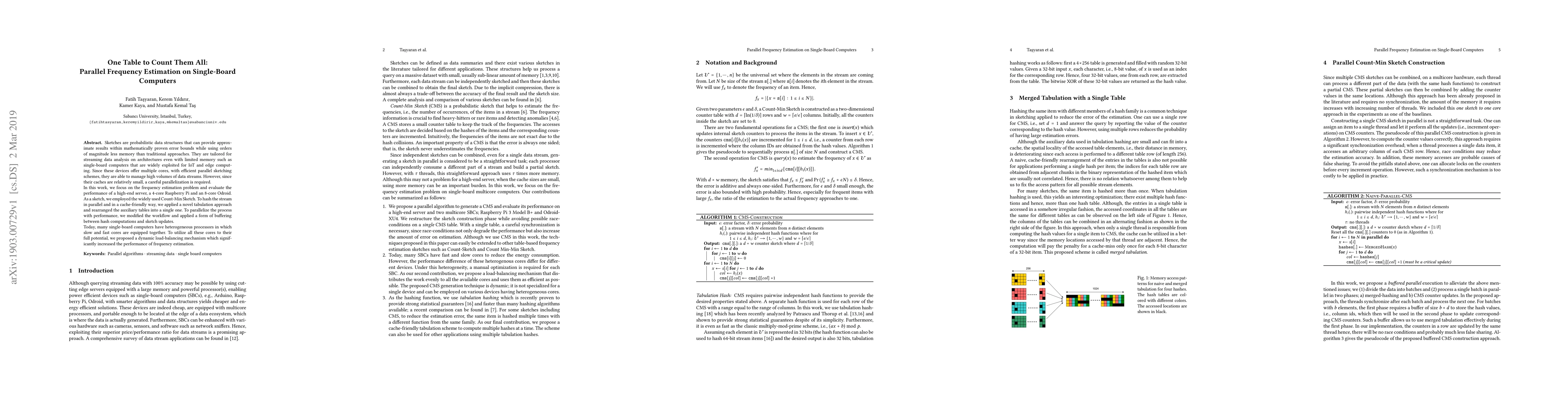 Sketches are probabilistic data structures that can provide approximate results within mathematically proven error bounds while using orders of magnitude less memory than traditional approaches. They are tailored for streaming data analysis on architectures even with limited memory such as single-board computers that are widely exploited for IoT and edge computing. Since these devices offer multiple cores, with efficient parallel sketching schemes, they are able to manage high volumes of data streams. However, since their caches are relatively small, a careful parallelization is required. In this work, we focus on the frequency estimation problem and evaluate the performance of a high-end server, a 4-core Raspberry Pi and an 8-core Odroid. As a sketch, we employed the widely used Count-Min Sketch. To hash the stream in parallel and in a cache-friendly way, we applied a novel tabulation approach and rearranged the auxiliary tables into a single one. To parallelize the process with performance, we modified the workflow and applied a form of buffering between hash computations and sketch updates. Today, many single-board computers have heterogeneous processors in which slow and fast cores are equipped together. To utilize all these cores to their full potential, we proposed a dynamic load-balancing mechanism which significantly increased the performance of frequency estimation.