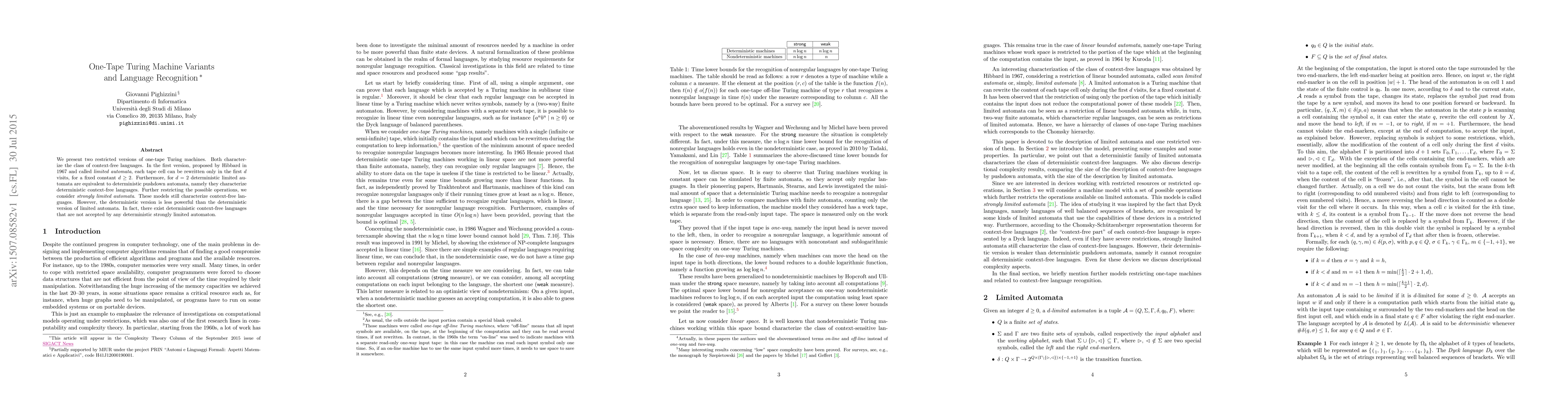 This paper explores two variants of one-tape Turing machines—limited and strongly limited automata—both of which characterize context-free languages. Limited automata, with a fixed number of rewrites per tape cell, are equivalent to deterministic pushdown automata for $d=2$. Strongly limited automata, with further restrictions, are less powerful, failing to accept some deterministic context-free languages.