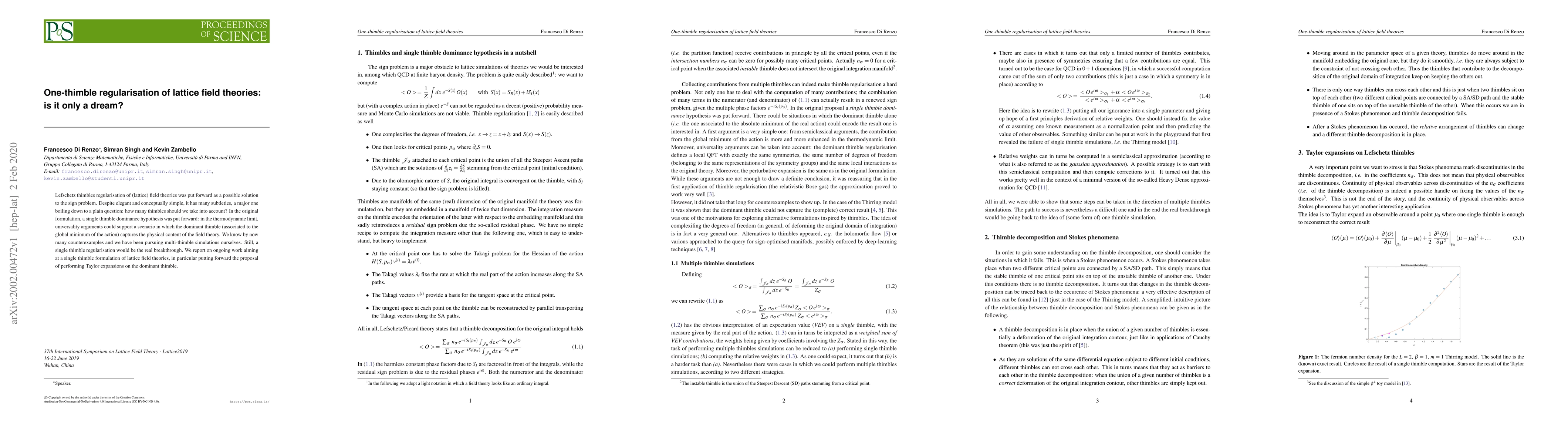 Lefschetz thimbles regularisation of (lattice) field theories was put forward as a possible solution to the sign problem. Despite elegant and conceptually simple, it has many subtleties, a major one boiling down to a plain question: how many thimbles should we take into account? In the original formulation, a single thimble dominance hypothesis was put forward: in the thermodynamic limit, universality arguments could support a scenario in which the dominant thimble (associated to the global minimum of the action) captures the physical content of the field theory. We know by now many counterexamples and we have been pursuing multi-thimble simulations ourselves. Still, a single thimble regularisation would be the real breakthrough. We report on ongoing work aiming at a single thimble formulation of lattice field theories, in particular putting forward the proposal of performing Taylor expansions on the dominant thimble.