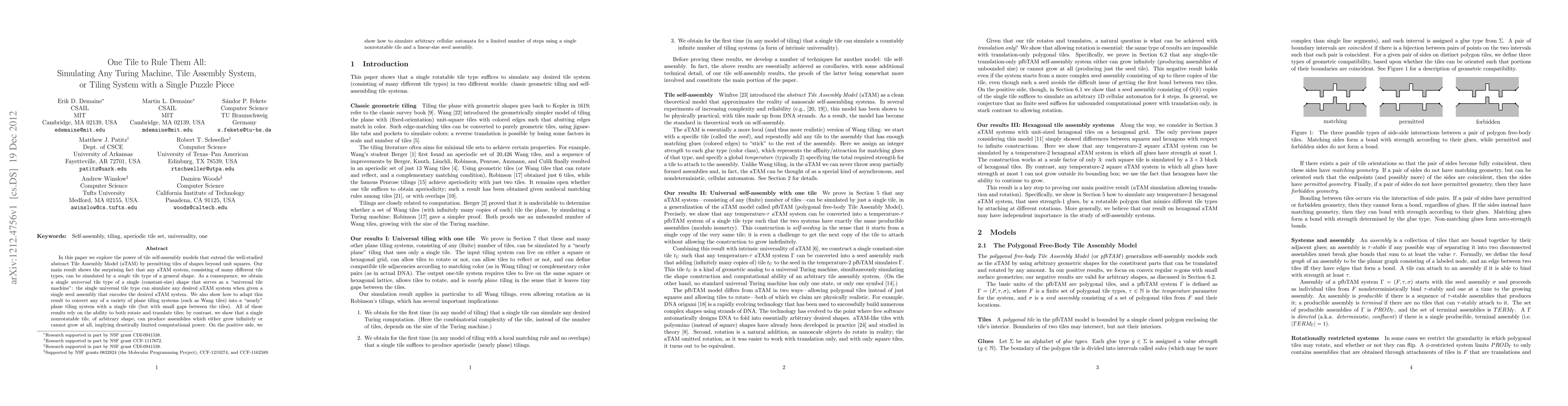 Researchers discovered a single tile can simulate any Turing machine, tile assembly system, or tiling system with various shapes, enabling universal computation and conversion of other systems.