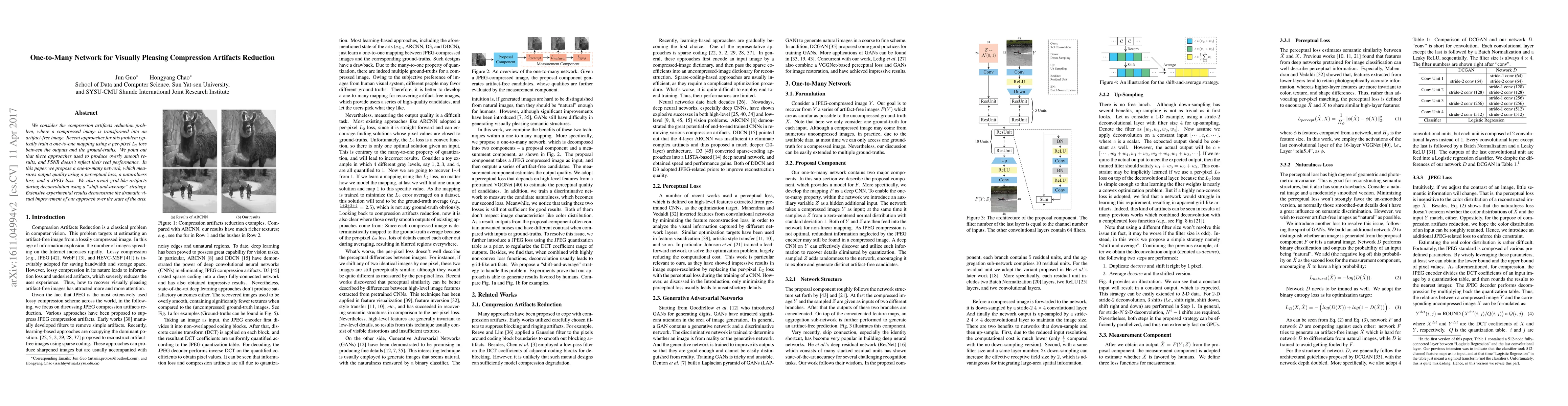 This paper proposes a one-to-many network for reducing compression artifacts in images, utilizing perceptual, naturalness, and JPEG losses to achieve visually pleasing results. The "shift-and-average" strategy helps avoid grid-like artifacts, significantly improving visual quality over existing methods.