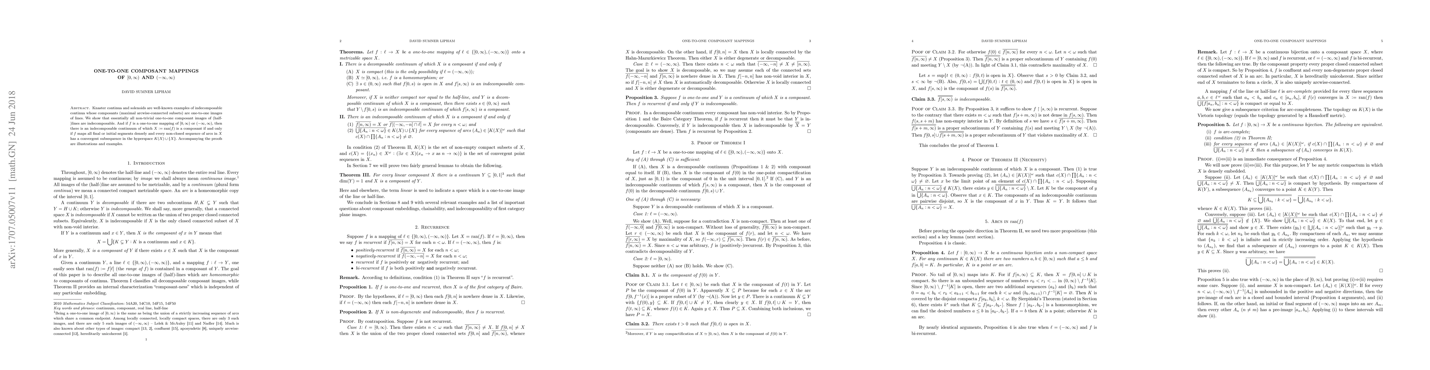 Researchers prove that many one-to-one mappings of lines to continua are indecomposable, with key conditions involving dense mapping of segments and convergent subsequences in hyperspace.