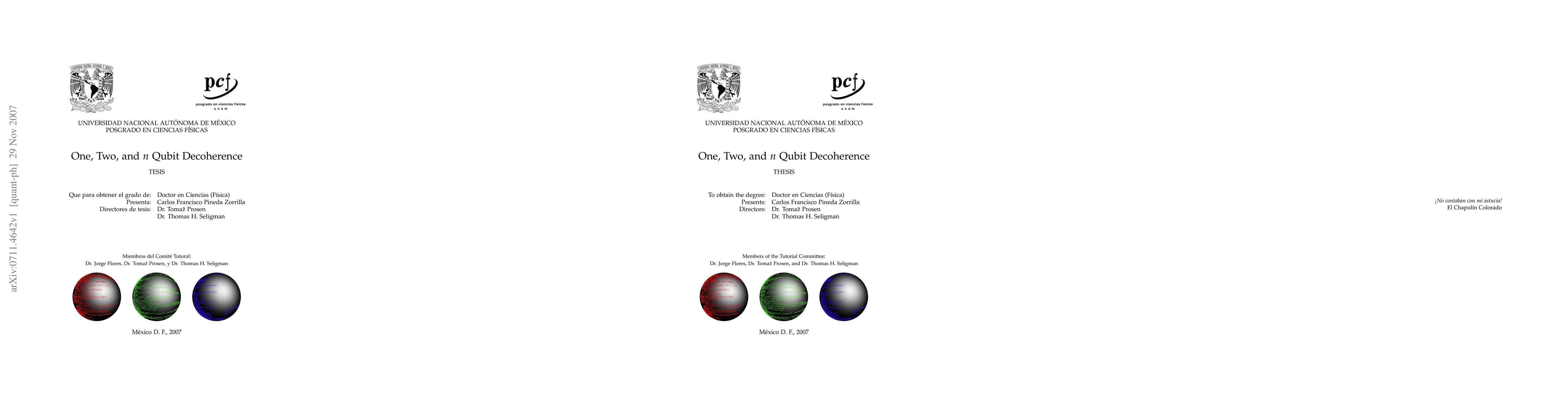 We study decoherence of one, two, and $n$ non-interacting qubits. Decoherence, measured in terms of purity, is calculated in linear response approximation, making use of the spectator configuration. The environment and its interaction with the qubits are modelled by random matrices. For two qubits, numerical studies reveal a simple one to one correspondence between its decoherence and its internal entanglement decay. Using this relation we are able to give a formula for concurrence decay. For large environments the evolution induces a unital channel in the two qubits, providing a partial explanation for the relation above. Using a kicked Ising spin network, we study the exact evolution of two non-interacting qubits in the presence of a spin bath. We find that the entanglement (as measured by concurrence) of the two qubits has a close relation to the purity of the pair, and closely follows an analytic relation derived for Werner states. As a collateral result we find that an integrable environment causes quadratic decay of concurrence as well as of purity, while a chaotic environment causes linear decay. Both quantities display recurrences in some integrable environments. Good agreement with the results found using random matrix theory is obtained. Finally, we analyze decoherence of a quantum register in the absence of non-local operations. The problem is solved in terms of a sum rule which implies linear scaling in the number of qubits. Each term involves a single qubit and its entanglement with the remaining ones. Two conditions are essential: decoherence must be small and the coupling of different qubits must be uncorrelated in the interaction picture. We apply the result to the random matrix model, and illustrate its reach considering a GHZ state coupled to a spin bath.