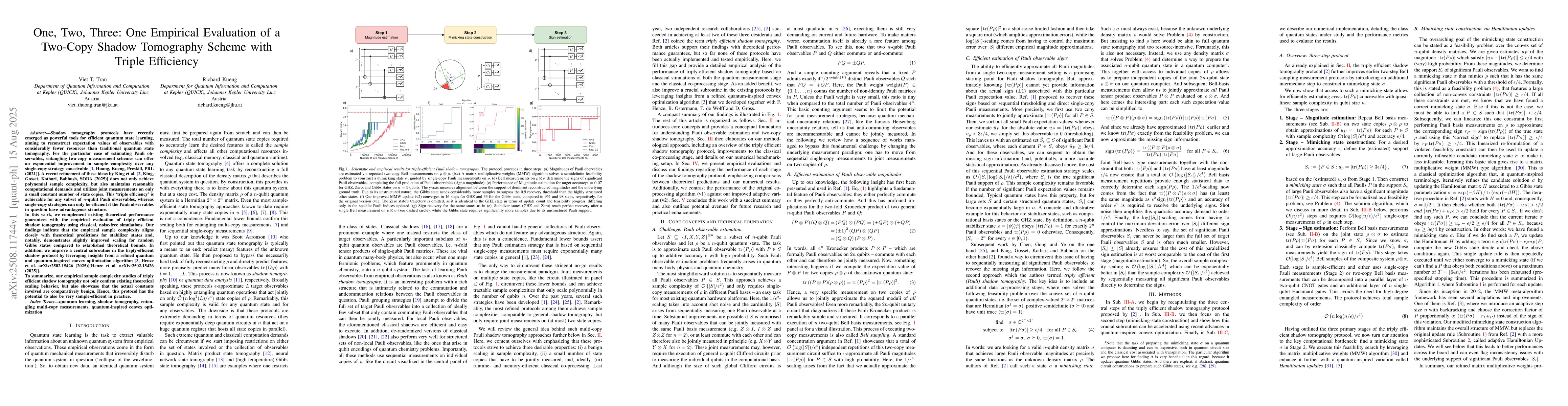 Shadow tomography protocols have recently emerged as powerful tools for efficient quantum state learning, aiming to reconstruct expectation values of observables with fewer resources than traditional quantum state tomography. For the particular case of estimating Pauli observables, entangling two-copy measurement schemes can offer an exponential improvement in sample complexity over any single-copy strategy conceivable [1, Huang, Kueng, Preskill, PRL(2021)]. A recent refinement of these ideas by King et al. [2, King, Gosset, Kothari, Babbush, SODA (2025)] does not only achieve polynomial sample complexity, but also maintains reasonable computational demands and utilizes joint measurements on only a small constant number of state copies. This `triple efficiency' is achievable for any subset of $n$-qubit Pauli observables, whereas single-copy strategies can only be efficient if the Pauli observables have advantageous structure. In this work, we complement existing theoretical performance guarantees with the empirical evaluation of triply efficient shadow tomography using classical, noise-free simulations. Our findings indicate that the empirical sample complexity aligns closely with theoretical predictions for stabilizer states and, notably, demonstrates slightly improved scaling for random Gibbs states compared to established theoretical bounds. In addition, we improve a central subroutine in the triply-efficient shadow protocol by leveraging insights from a refined quantum and quantum-inspired convex optimization algorithm [3, Henze et al. arXiv:2502.15426 (2025)]. To summarize, our empirical sample complexity studies of triply efficient shadow tomography not only confirm existing theoretical scaling behavior, but also showcase that the actual constants involved are comparatively benign. Hence, this protocol has the potential to also be very sample-efficient in practice.