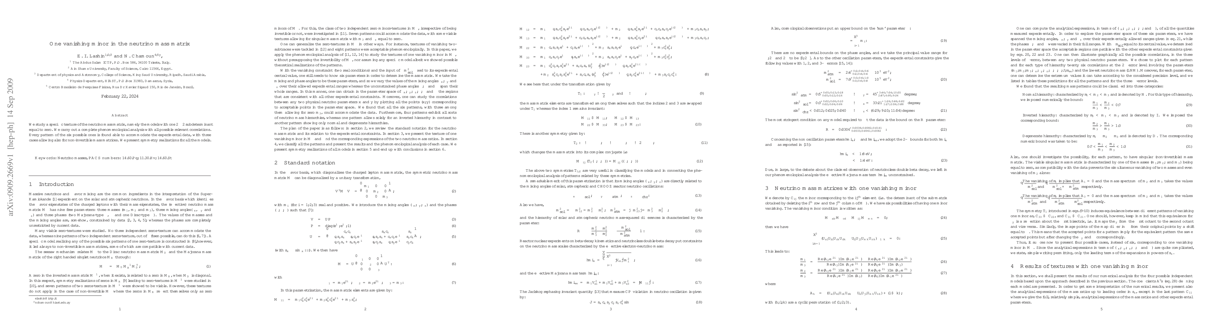 Researchers studied a specific pattern of neutrino mass matrix that accommodates experimental data, with three cases allowing non-invertible matrices.