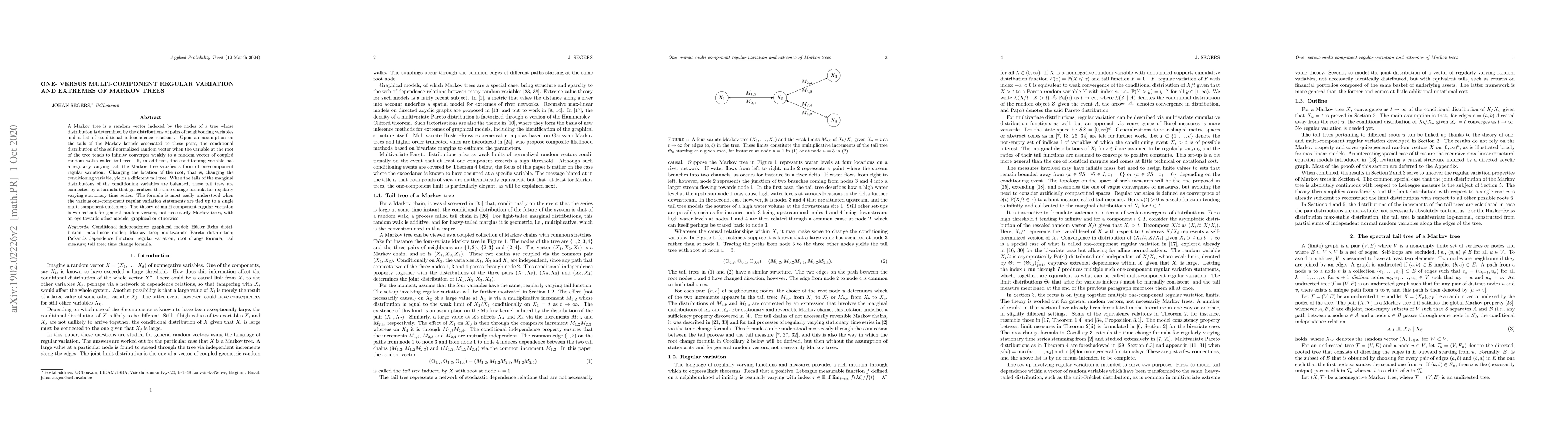 This paper examines the one- versus multi-component regular variation in Markov trees, showing that different root nodes lead to distinct tail trees. It develops a connection formula for these trees under balanced marginal distributions, linking one-component regular variation to a broader multi-component theory.