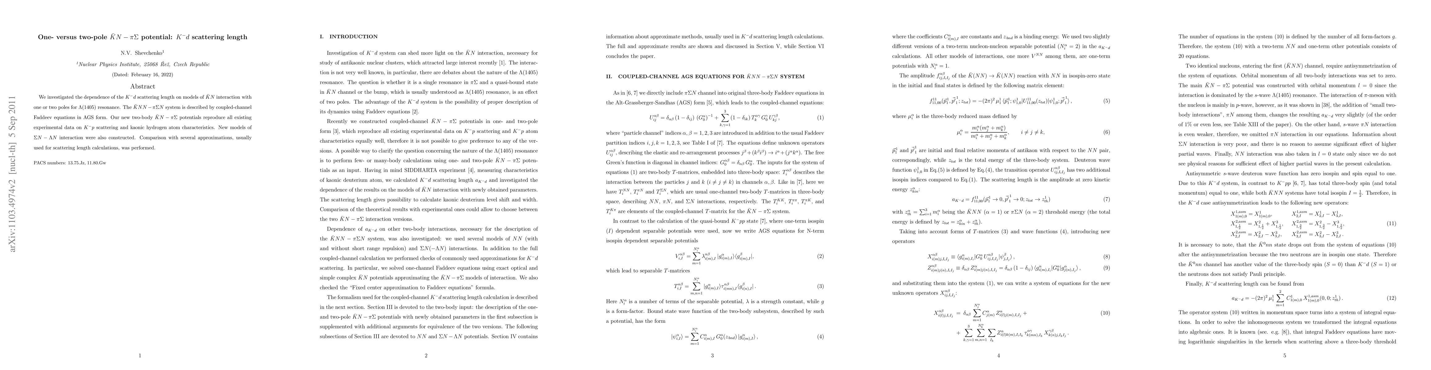 The development of new two-body $ar{K}N - ho ho N$ potentials that reproduce existing experimental data.