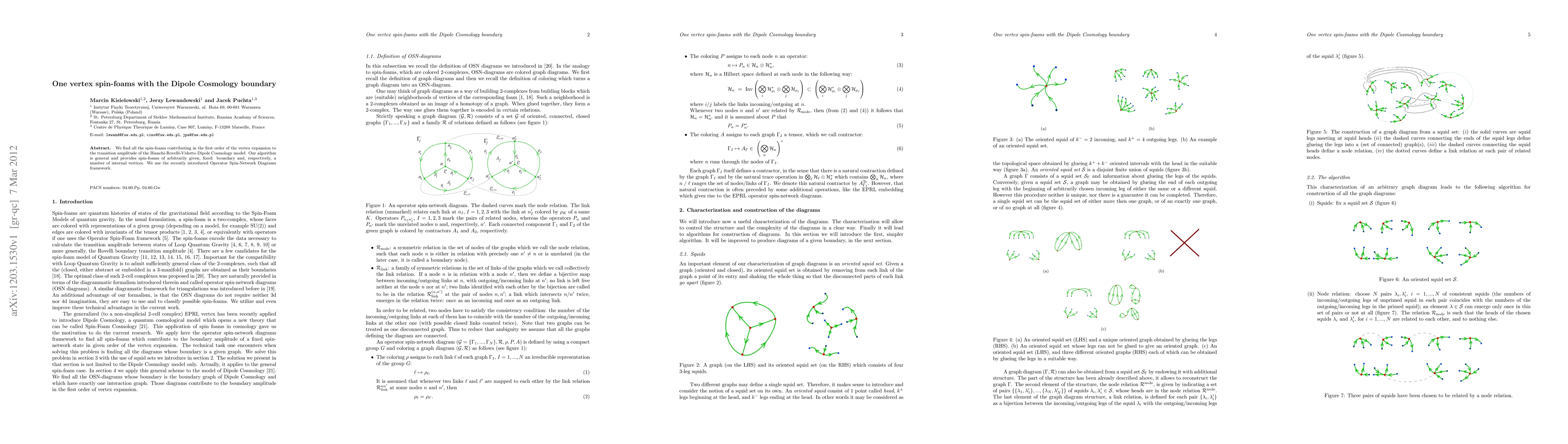 We find all the spin-foams contributing in the first order of the vertex expansion to the transition amplitude of the Bianchi-Rovelli-Vidotto Dipole Cosmology model. Our algorithm is general and provides spin-foams of arbitrarily given, fixed: boundary and, respectively, a number of internal vertices. We use the recently introduced Operator Spin-Network Diagrams framework.