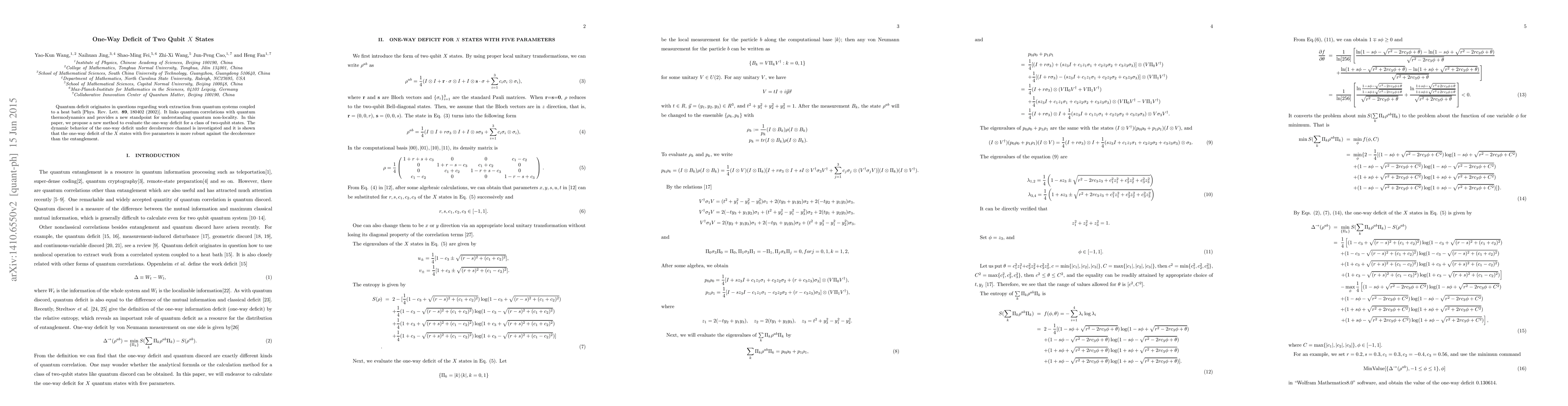 Quantum deficit originates in questions regarding work extraction from quantum systems coupled to a heat bath [Phys. Rev. Lett. 89, 180402 (2002)]. It links quantum correlations with quantum thermodynamics and provides a new standpoint for understanding quantum non-locality. In this paper, we propose a new method to evaluate the one-way deficit for a class of two-qubit states. The dynamic behavior of the one-way deficit under decoherence channel is investigated and it is shown that the one-way deficit of the X states with five parameters is more robust against the decoherence than the entanglement.