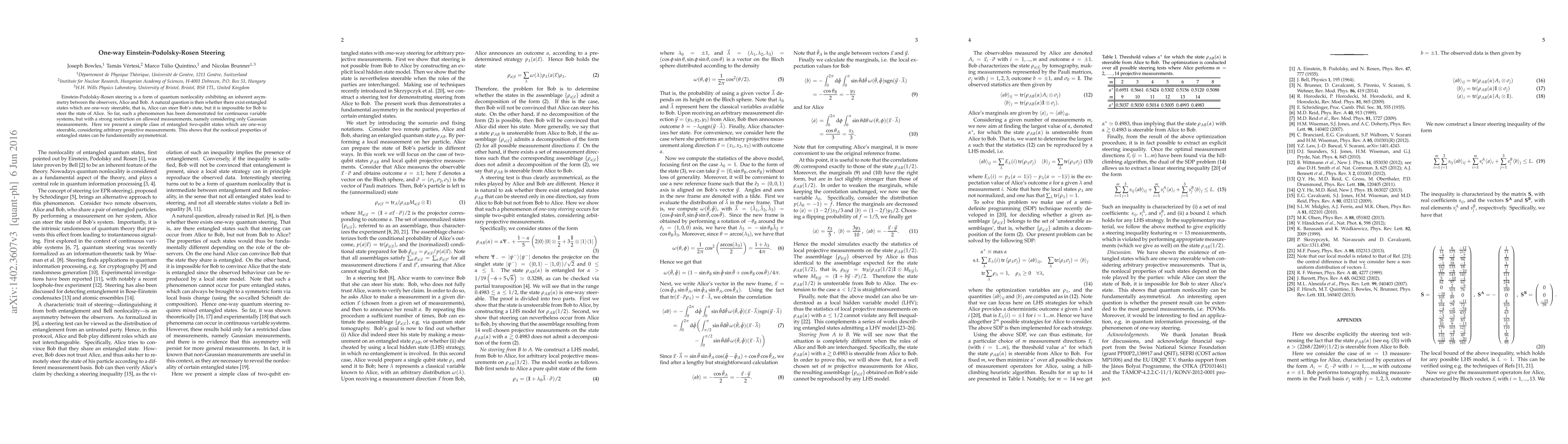 This paper introduces a class of entangled two-qubit states that exhibit one-way Einstein-Podolsky-Rosen steering, where Alice can influence Bob's state but Bob cannot influence Alice's state, demonstrating fundamental asymmetry in quantum nonlocal properties.