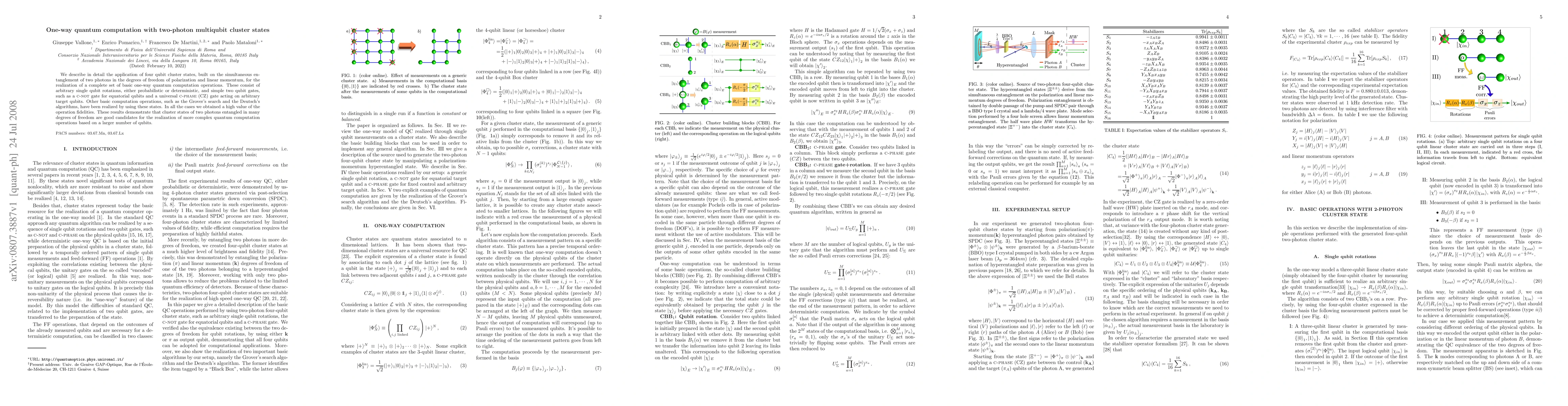 This paper details the use of four-qubit cluster states formed by entangled two-photon systems to perform a complete set of one-way quantum computation operations, achieving high fidelity. The study demonstrates the potential of multi-degree entangled photon states for complex quantum computations.