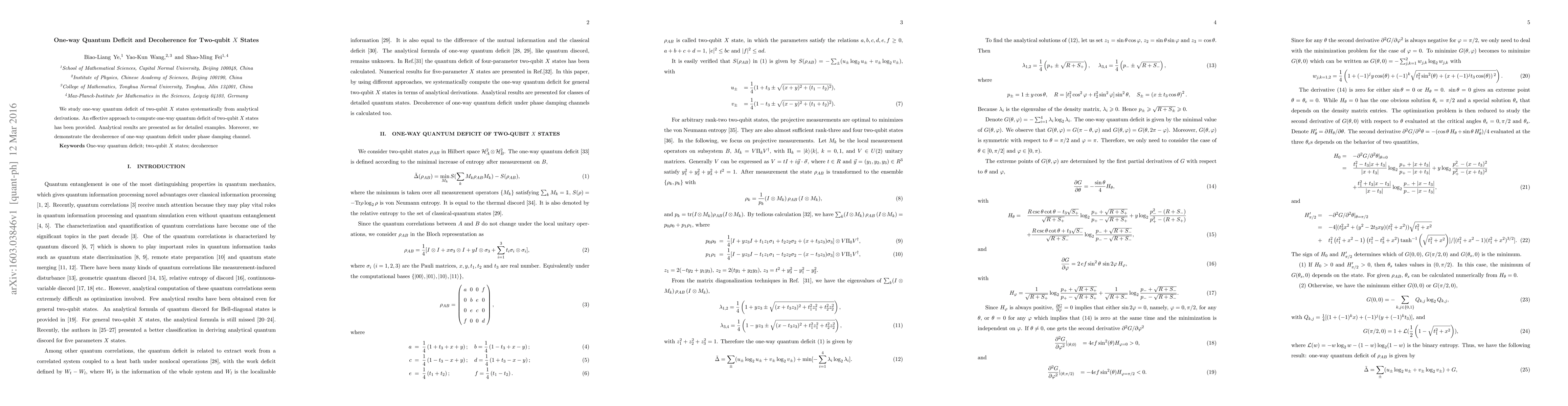 Summary: This paper systematically derives and analyzes one-way quantum deficit for two-qubit $X$ states, presenting an effective computational approach and demonstrating its decoherence under phase damping through analytical examples.